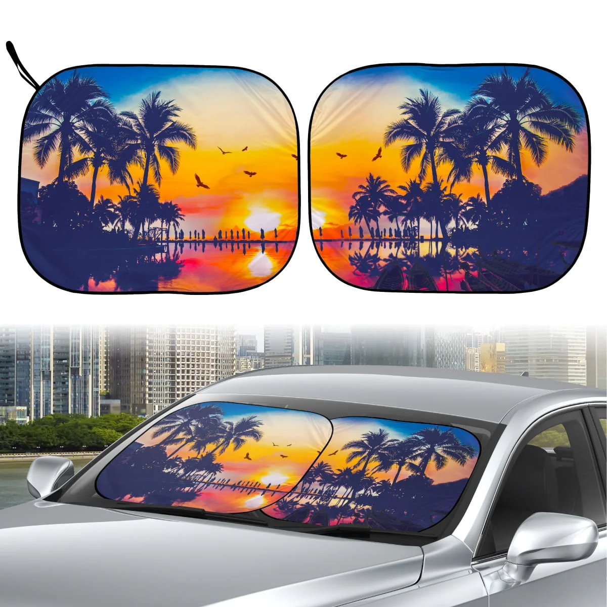 Auto Drive 2 Piece Universal Fit Most Vehicles' Windshield Super Jumbo Tropical Twist Sun Shade, 31.5" x 38"