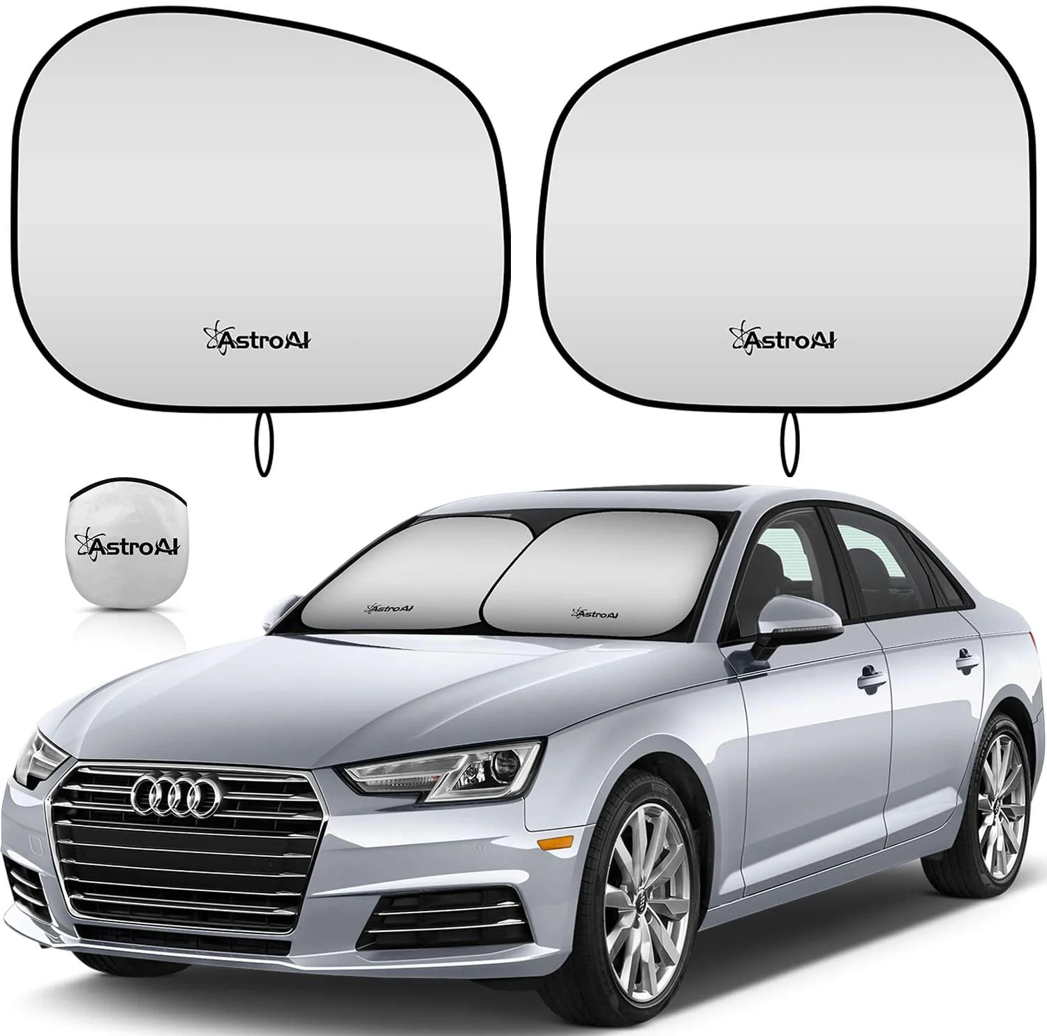 AstroAI 2-Piece Windshield Sun Shade - Windshield Shade Foldable Car Front Sunshield Blocks Max UV Rays, for Full Size SUV Truck Tesla, Silver