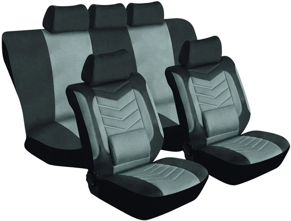 Grandeur Gray Car Seat Cover Set, Car Seat Protector, Interior Car Accessories, Front and Bench Seat Covers, Washable, Fabric, Spill Protectant, Stain Protectant, Easy Installation (Gray)