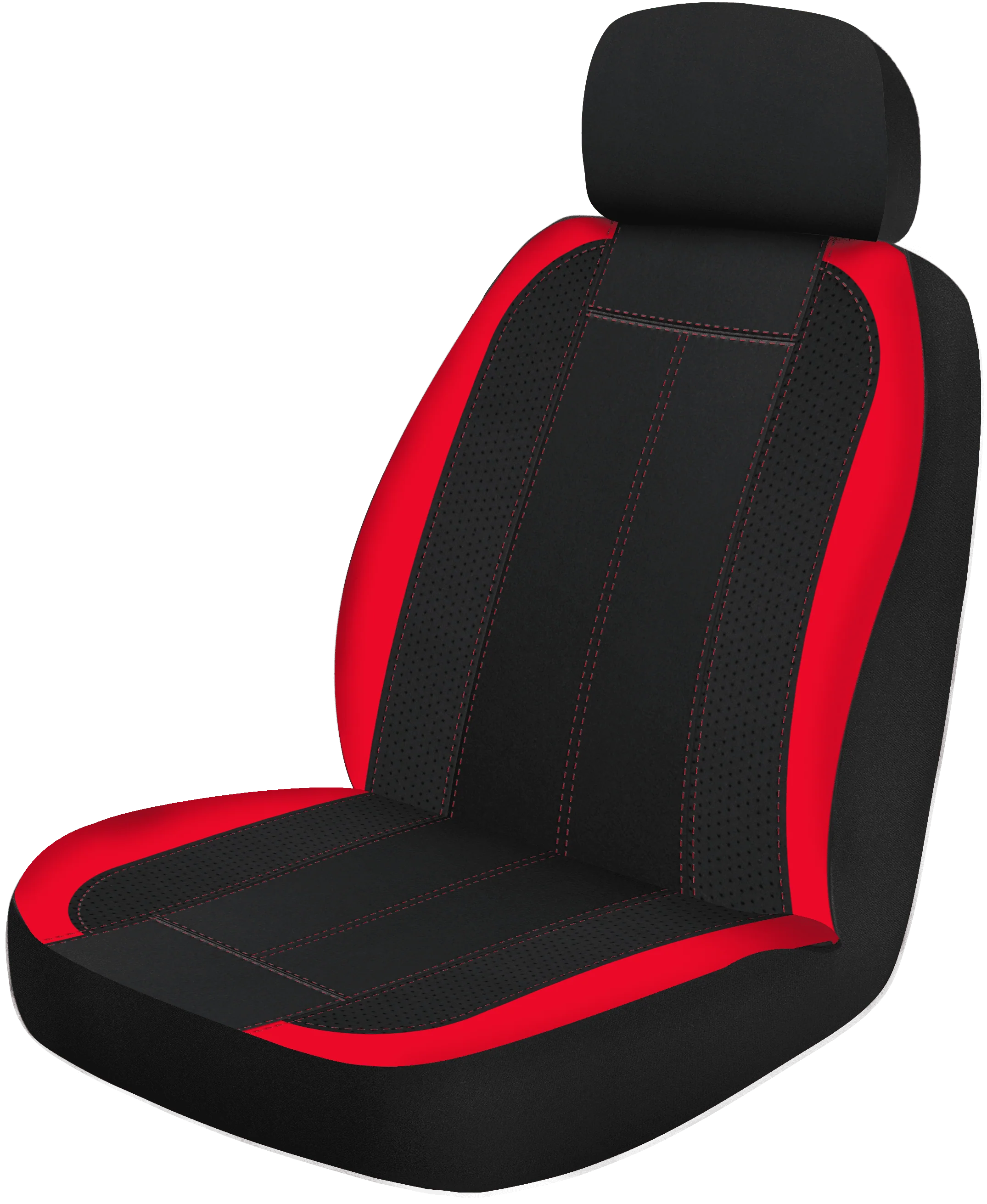 Auto Drive 2 Piece Car Seat Covers and Headrest Covers, Black Red Universal Fit