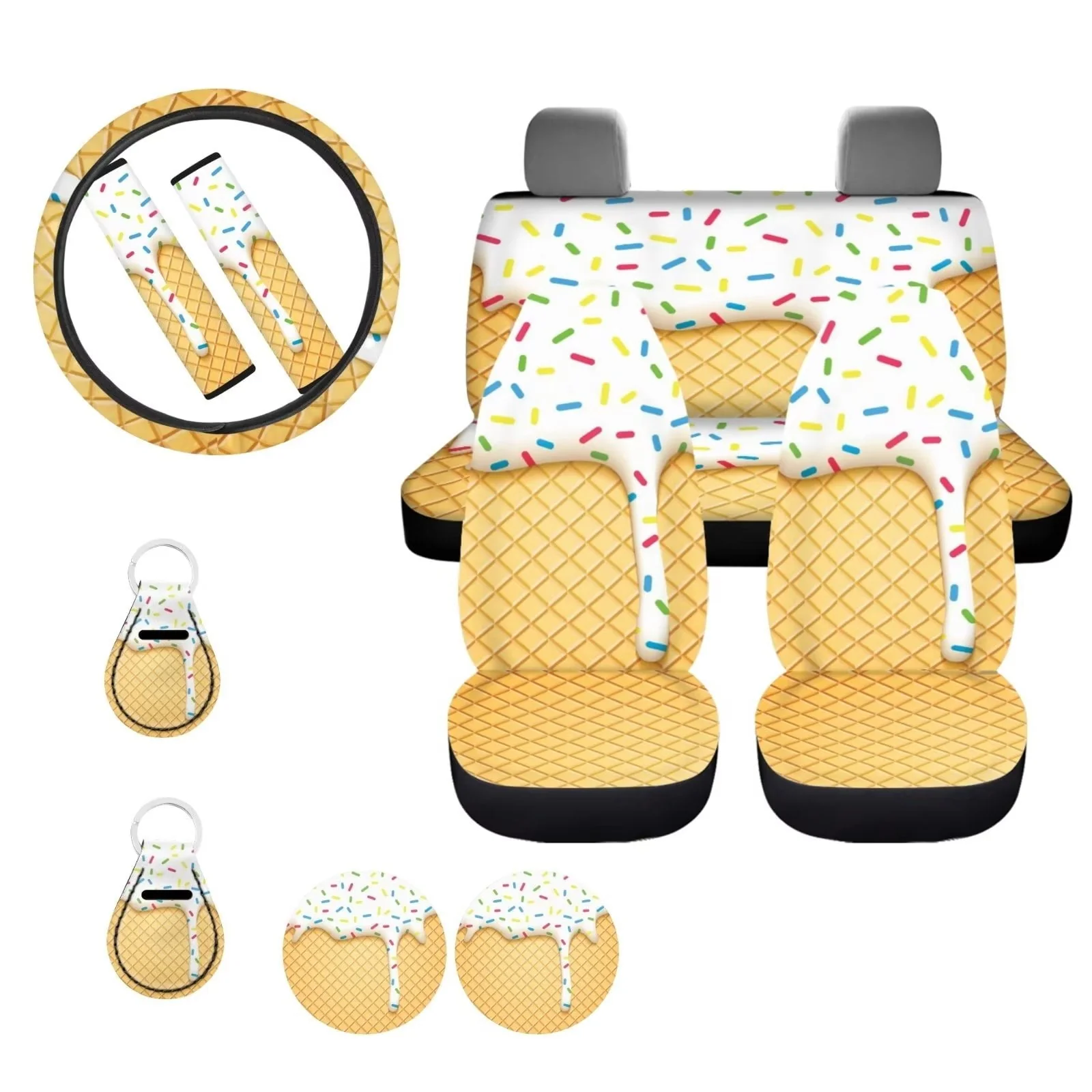 Binienty Yellow Car Seat Covers for Women with 1 Steering Wheel Cover,SUV/Van Ice-cream Cone 4 Seat Cover Interior Accessories,2 Keychain,2 Absorbent Cup Coaster,2 Seat Belt Covers Auto Decor