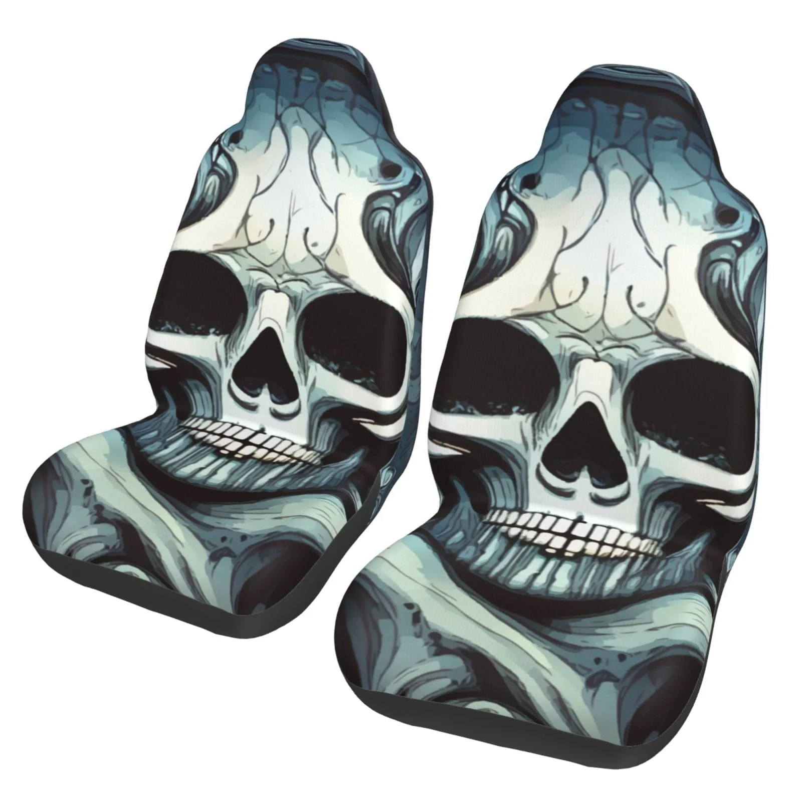 TEQUAN Front Seat Covers, Gothic Death Skull Carving Pattern 2 Piece Car Seat Cover Fit Most Car SUV Truck Van