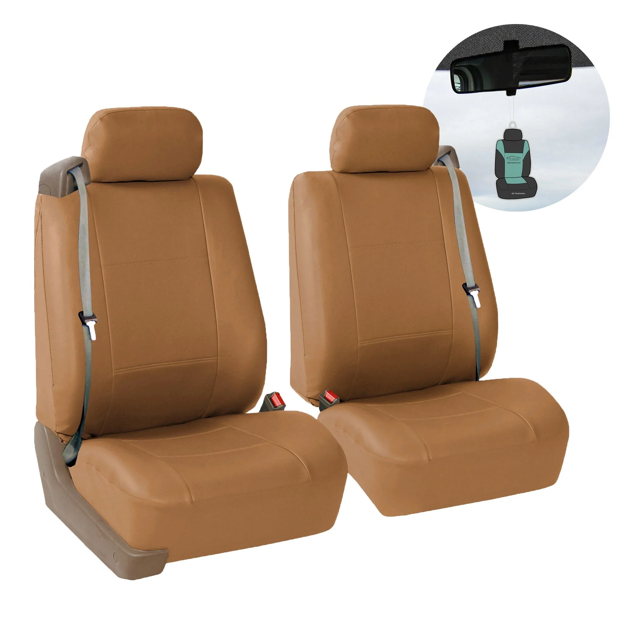 FH Group AFPU309TAN102 Tan Faux Leather Front Set Car Seat Covers with Air Freshener