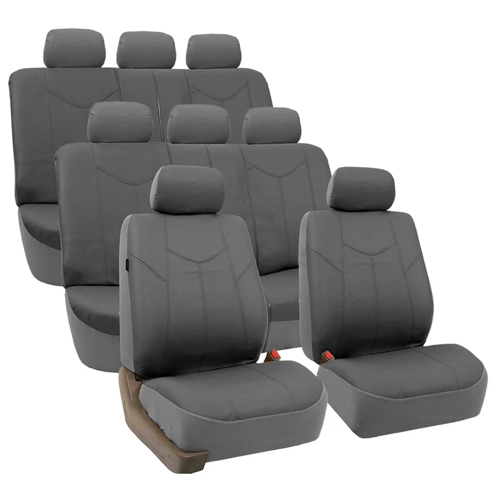 FH Group Gray Rome Faux Leather Airbag Compatible and Split Bench 8 Seaters Car Van Seat Covers, Full Set
