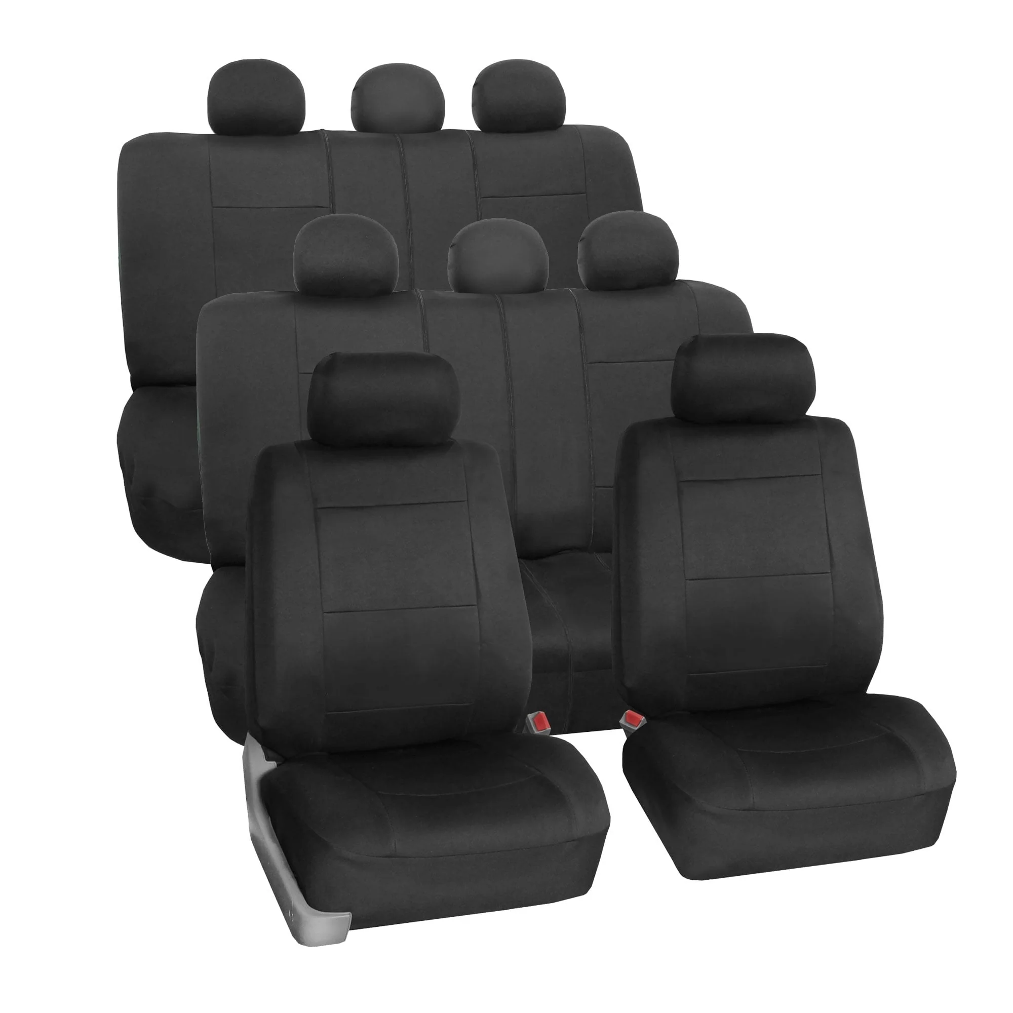 FH Group Neoprene 3 Row Car Seat Covers For SUV VAN TRUCK, Airbag Compatible Split Bench 8 Seaters, Black