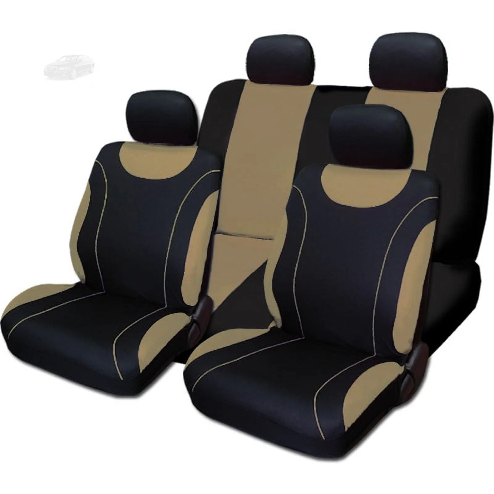 8 Pieces Flat Cloth Sleek Design Black and Tan Front and Rear Car Seat Covers Set - Shipping Included
