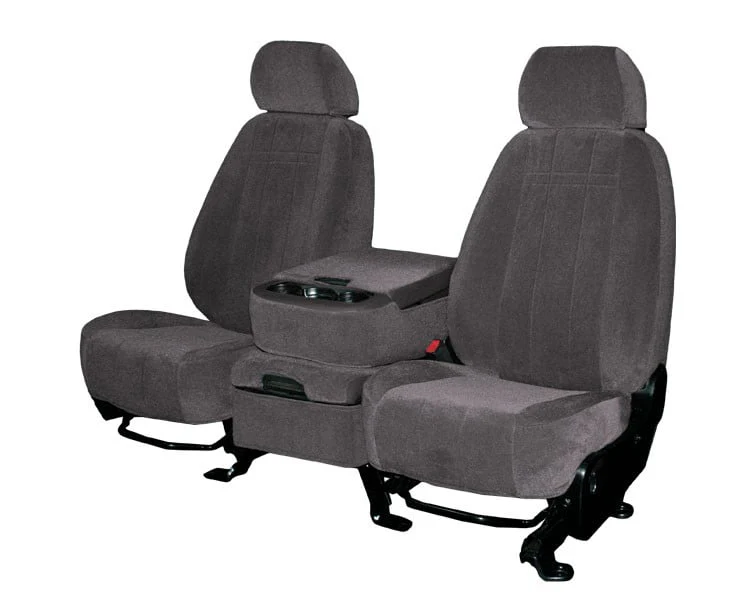 CalTrend Front Velour Seat Covers for 2003-2007 Chevy/GMC Avalanche|Tahoe|Suburban|Silverado|Sierra|Yukon 1500-3500 - CV380-03RA Charcoal Classic Insert and Trim