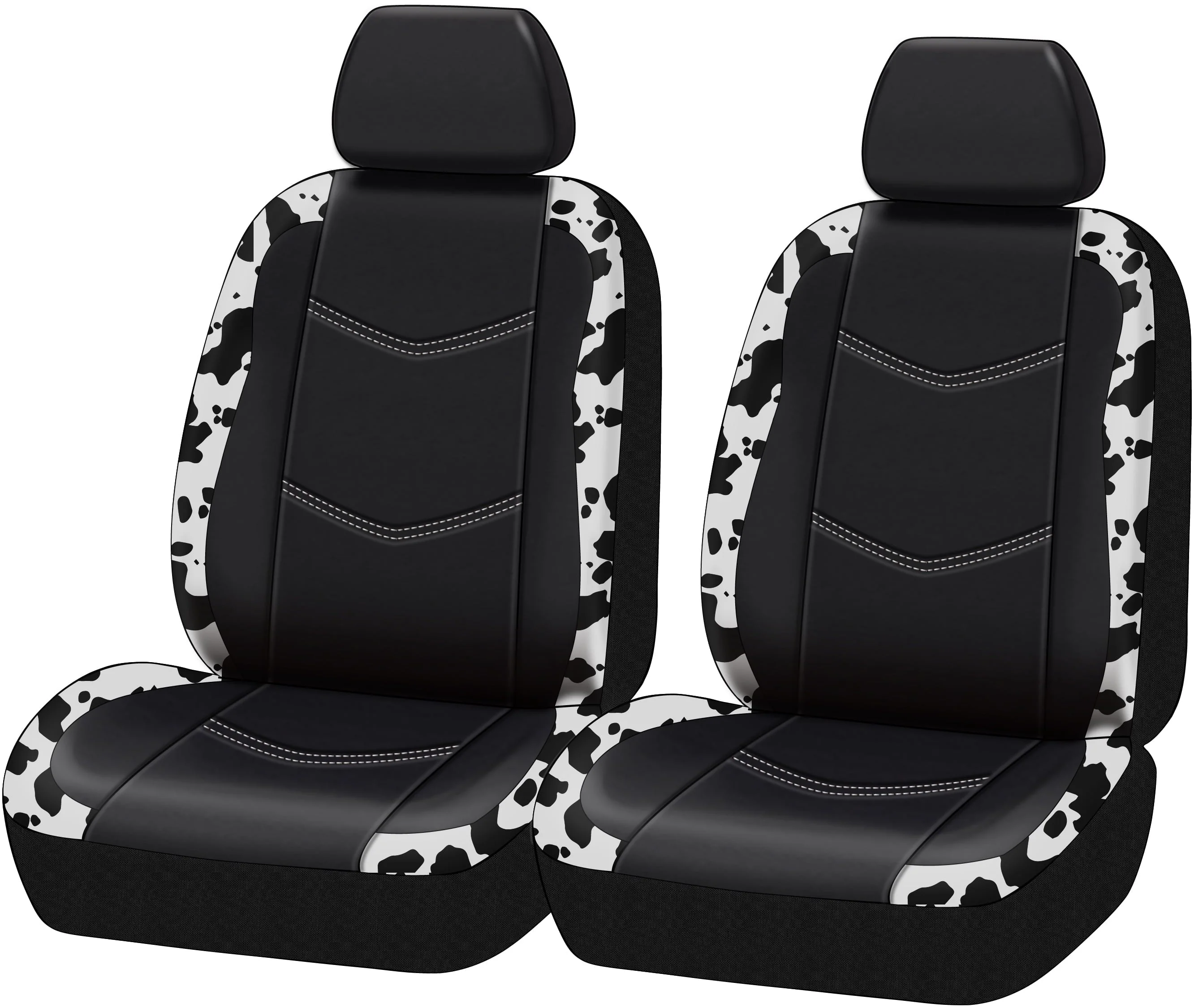 Auto Drive Universal Fit Black,White Cow Faux Leather Car Seat and Headrest Cover, Set of 2
