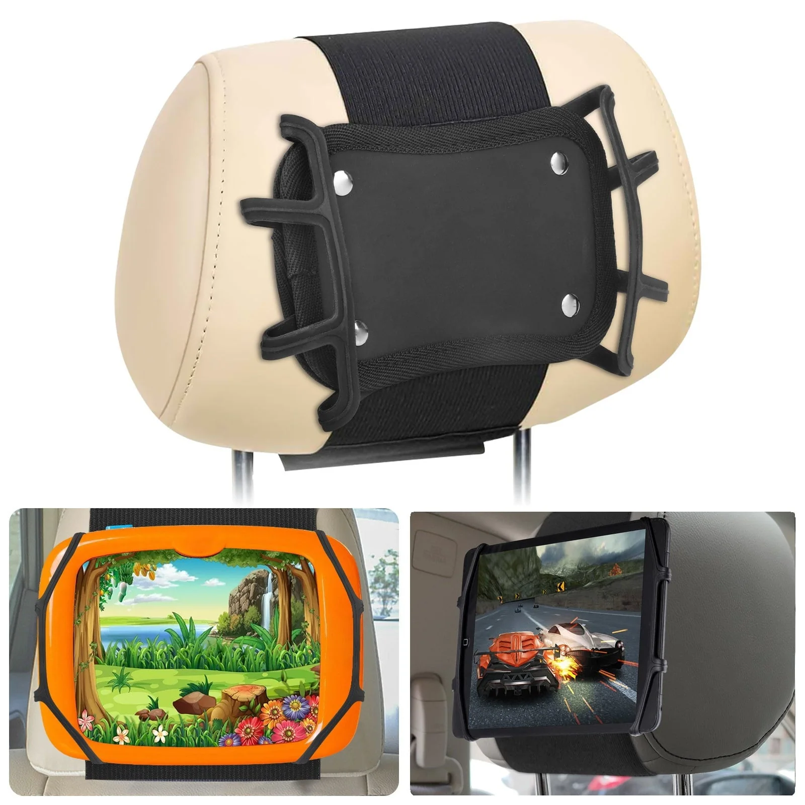 Car Back Seat Holder Compatible With iPad Kindle for Rear and Forward Facing Mirror, Headrest Mount Hanger Case For Vehicle Headrest Up to 10.5', lightweight Washable and Portable