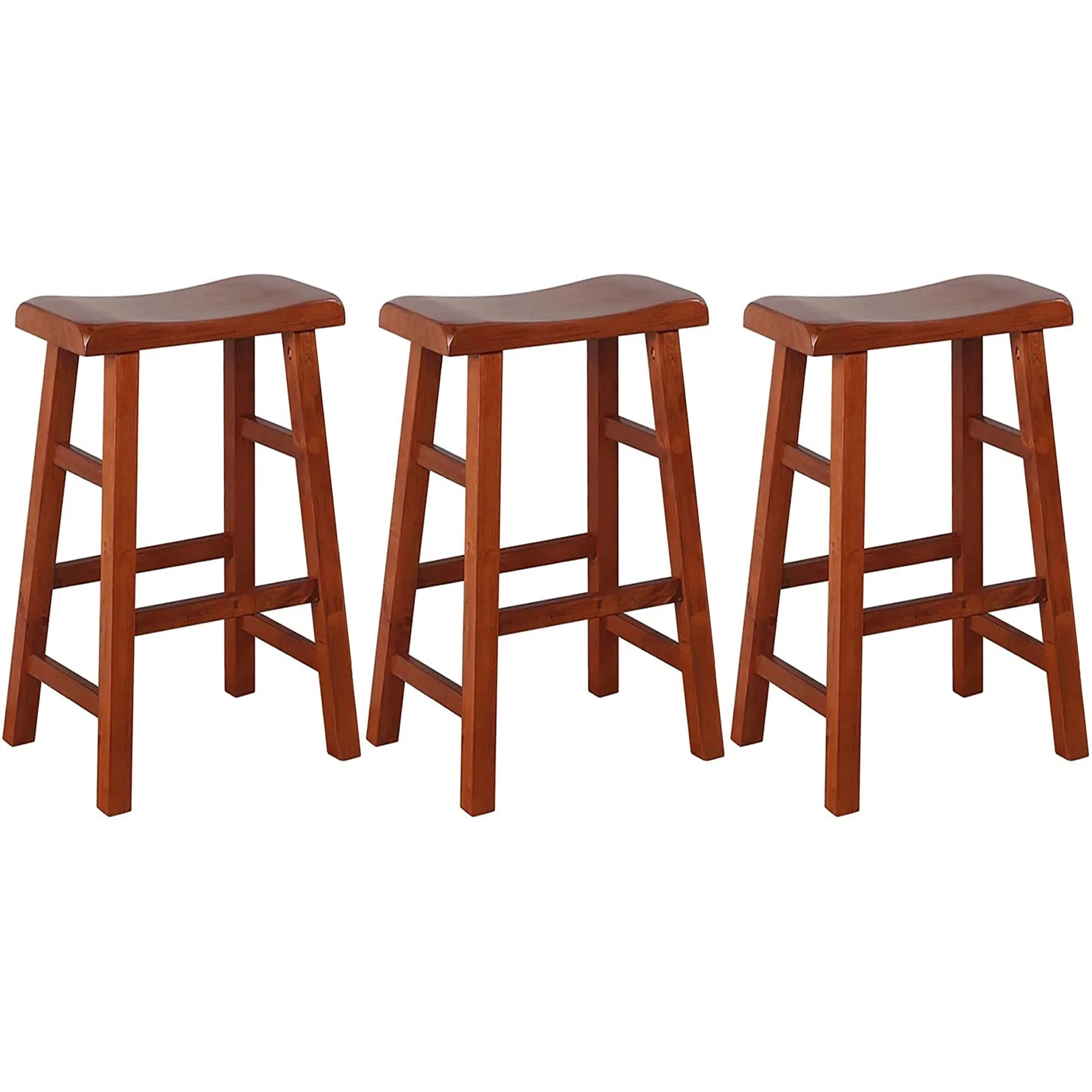 eHemco Heavy-Duty Solid Wood Saddle Seat Kitchen Counter Barstools, 29 Inches, Dark Oak, Set of 3