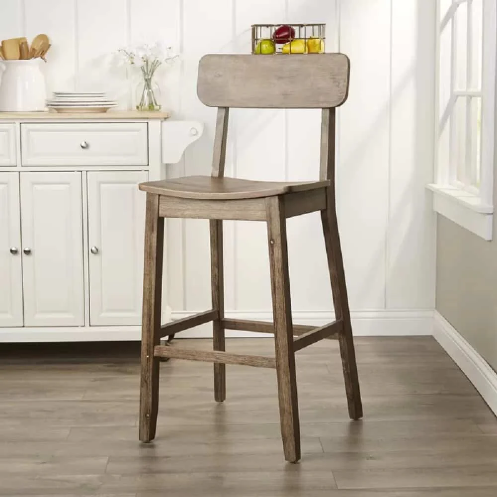 Boraam Torino Bar Height Open High Back Stationary Wood Bar Stool, Barnwood Wire-Brush Finish