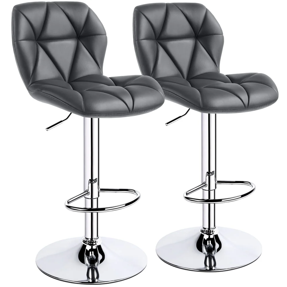 Alden Design Adjustable Counter-Height Faux Leather Modern Barstool, Set of 2, Gray