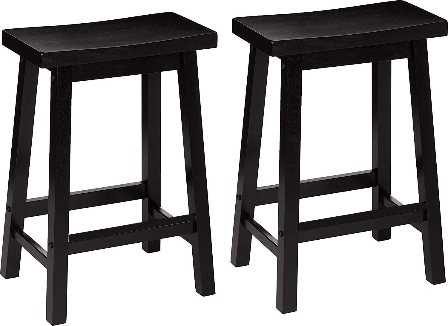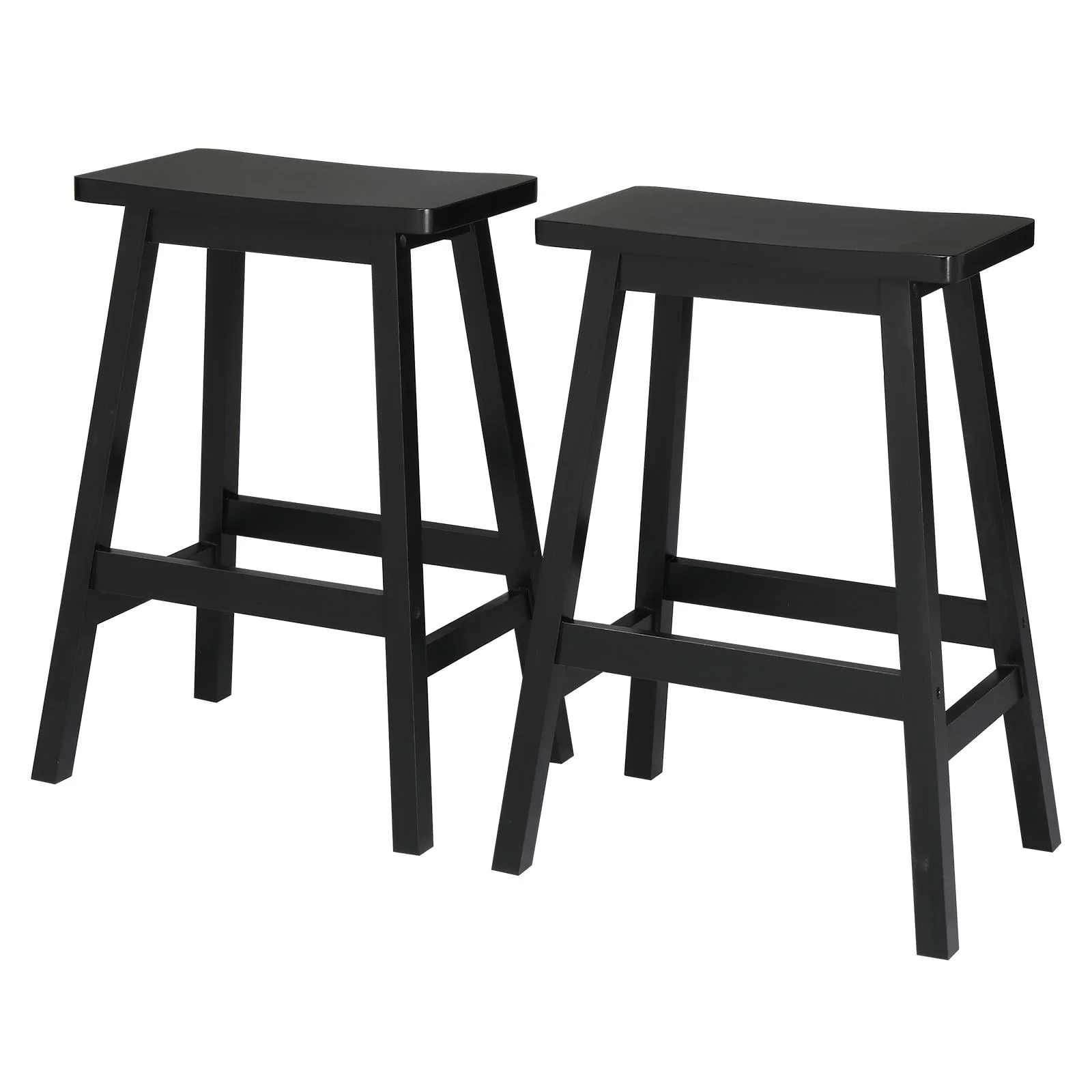 Ktaxon Set of 2 Saddle Seat 24" Bar Stools Wood Dining Room Kitchen Pub Chair,Black