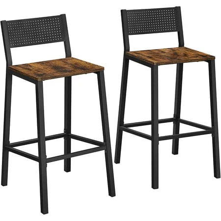 VASAGLE Bar Stools Set of 2 Bar Chairs Tall Bar Stools with Backrest Industrial in Party Room Rustic Brown and Black