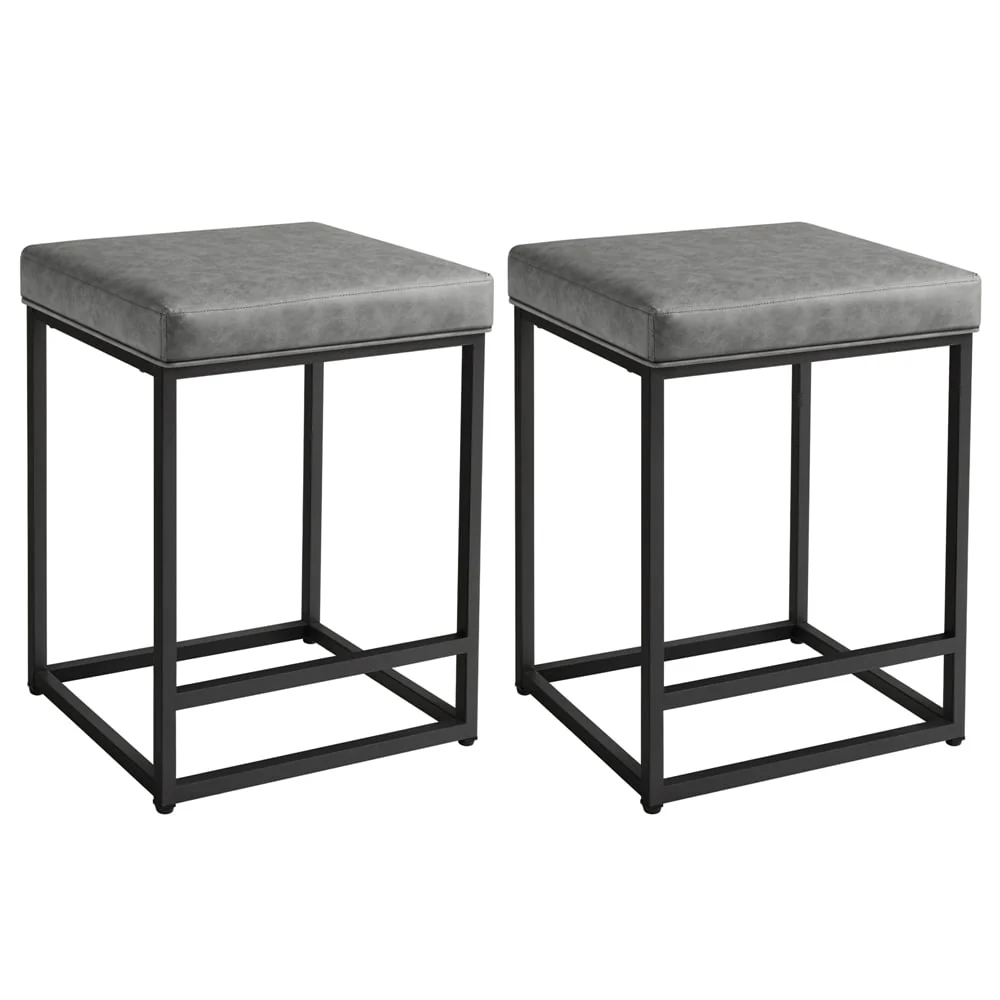 Topeakmart 2pcs 24'' H Modern Leather Bar Stools Backless Counter Hight, Gray