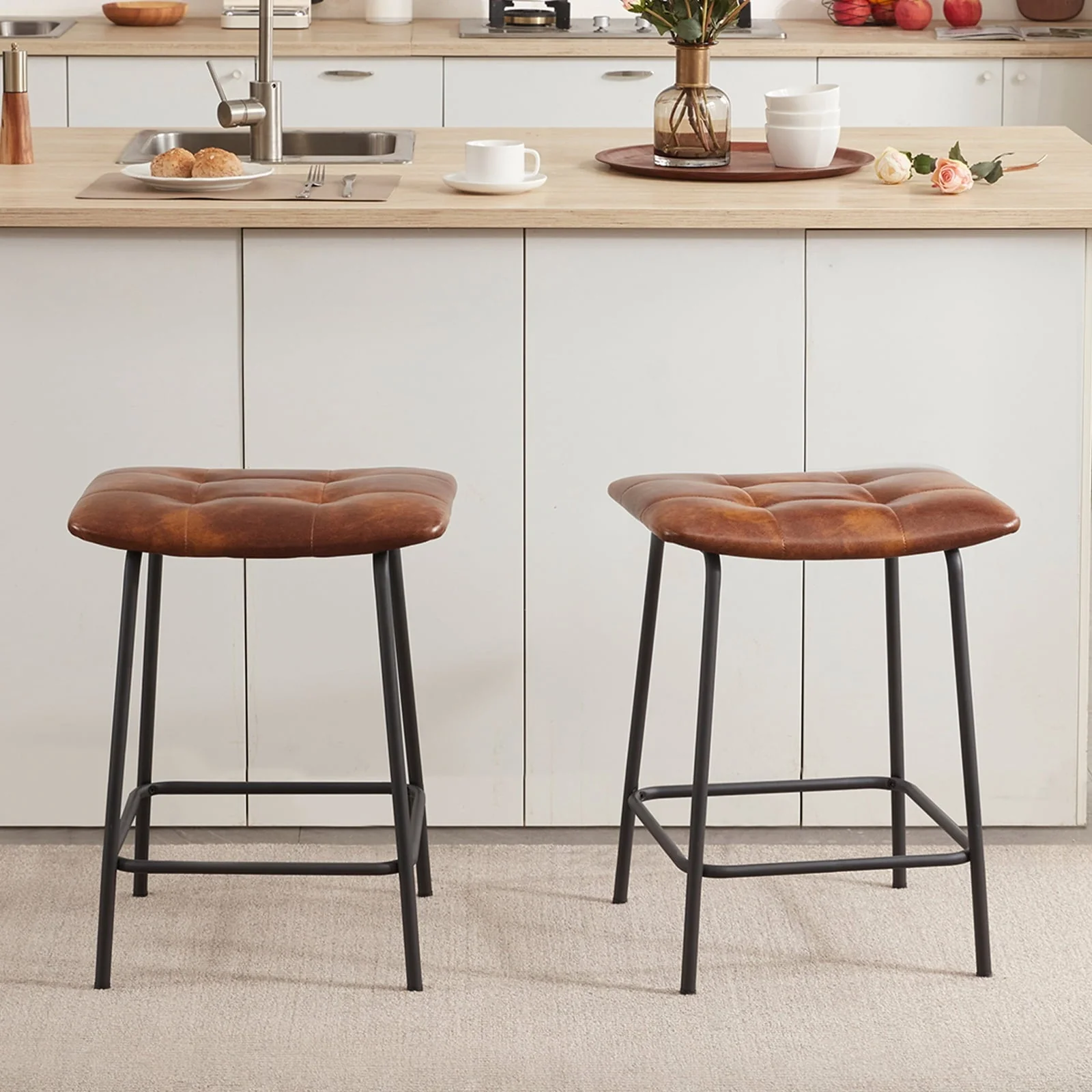 Duhome Counter Height Bar Stools Set of 2, Faux Leather Kitchen Counter Stools with Metal Legs Backless Upholstered, Yellowish Brown