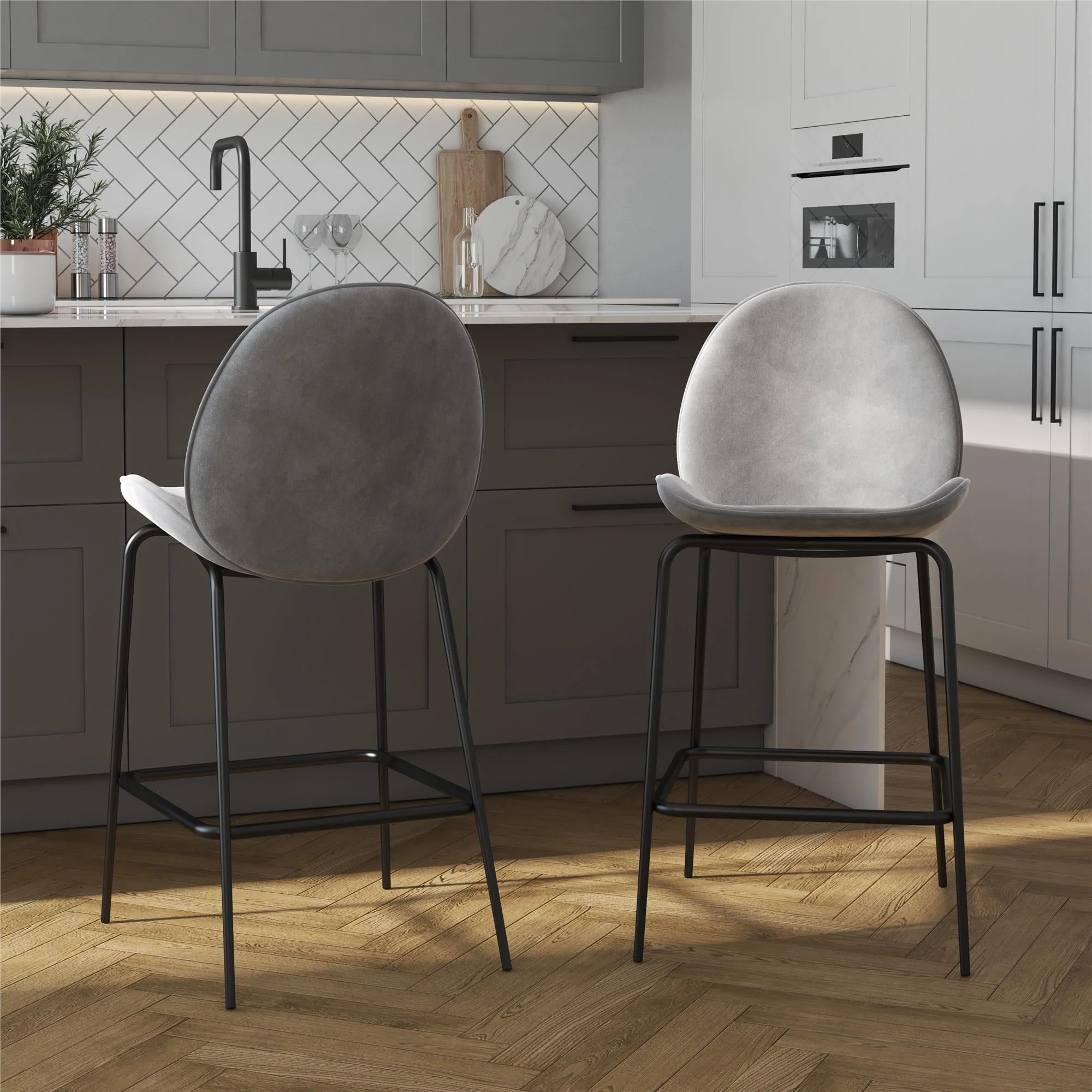 CosmoLiving by Cosmopolitan Astor 24" Counter Height Bar Stool, Gray Velvet
