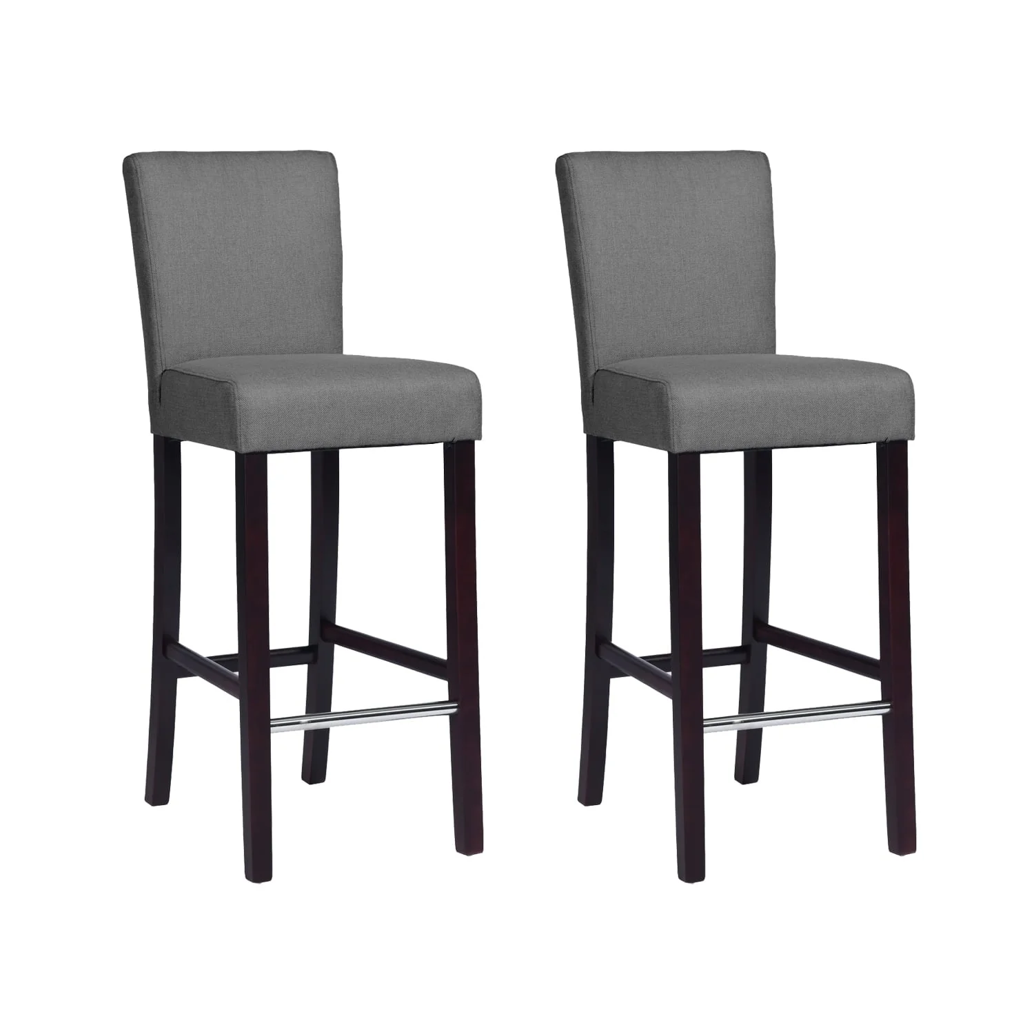 Homy Casa Set of 2 Bar Stools 28'' Upholstered Kitchen Breakfast Chairs Nailhead Bar Stools Full Back & Wood Legs, Gray