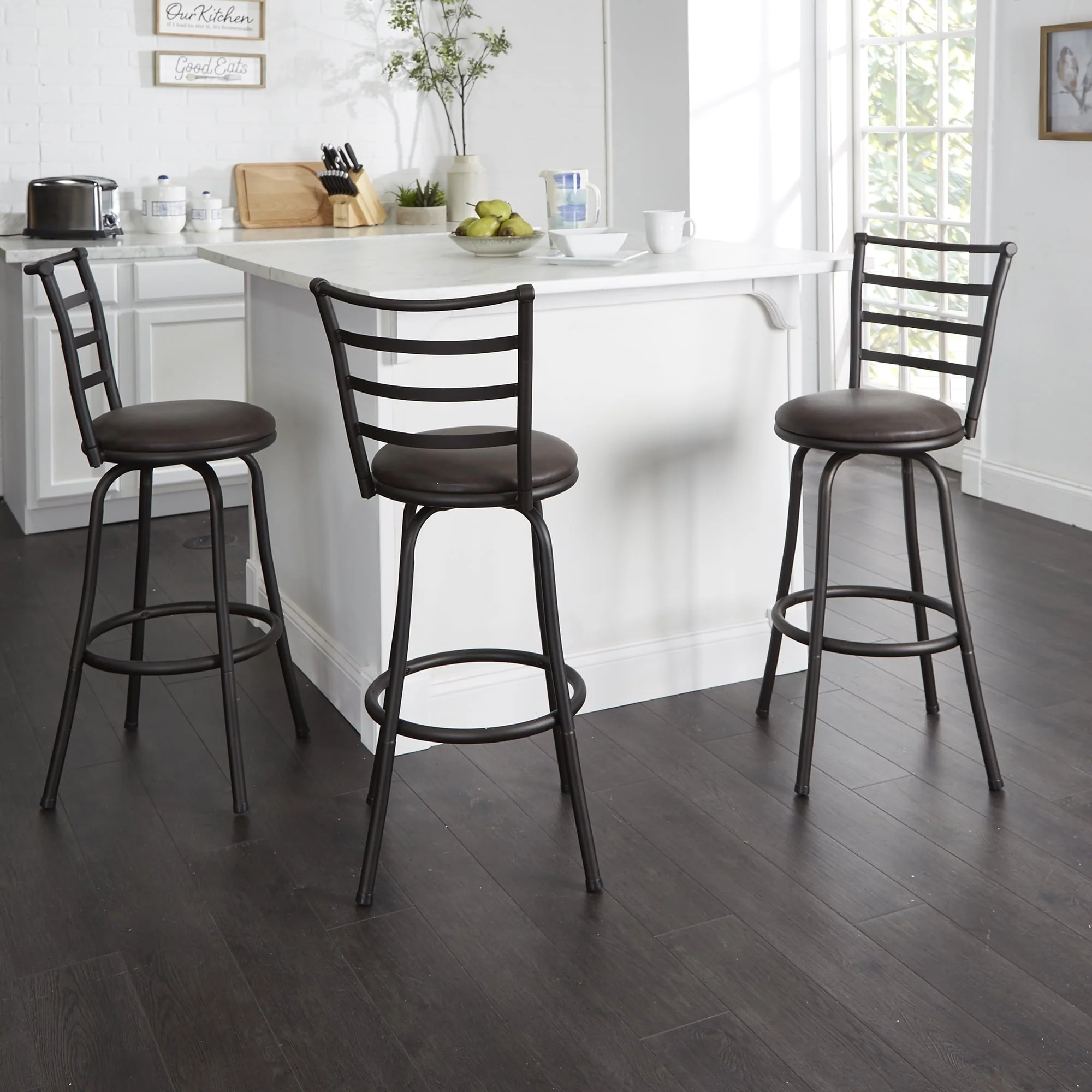 Mainstays 3 Pack Adjustable 24" or 29" Bronze Ladder Back Swivel Barstool, Espresso Vegan Leather Seat