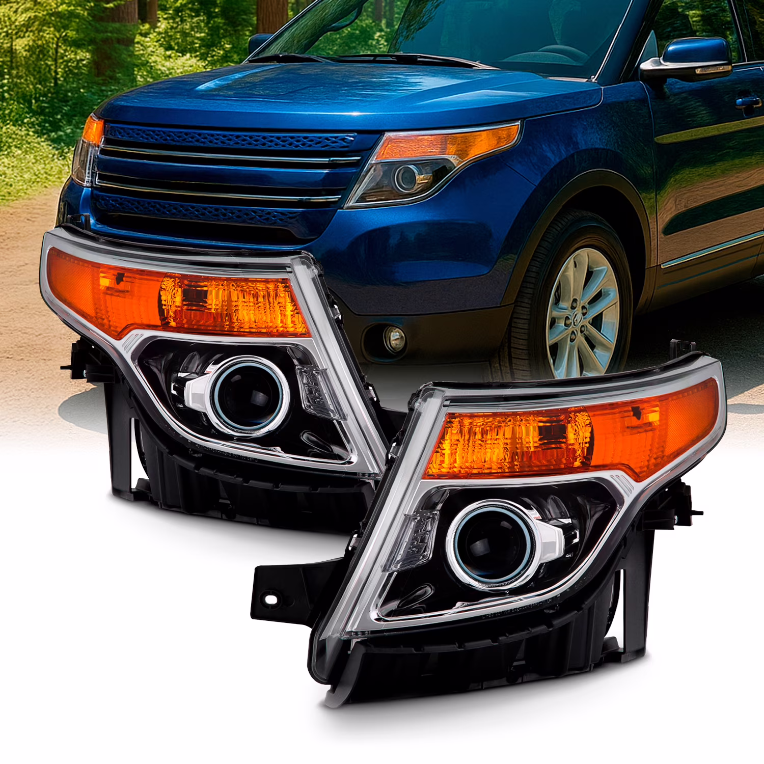 AKKON - For 2011-15 Ford Explorer Driver + Passenger Projector Headlight Assembly Chrome Housing Clear Lens Full Set