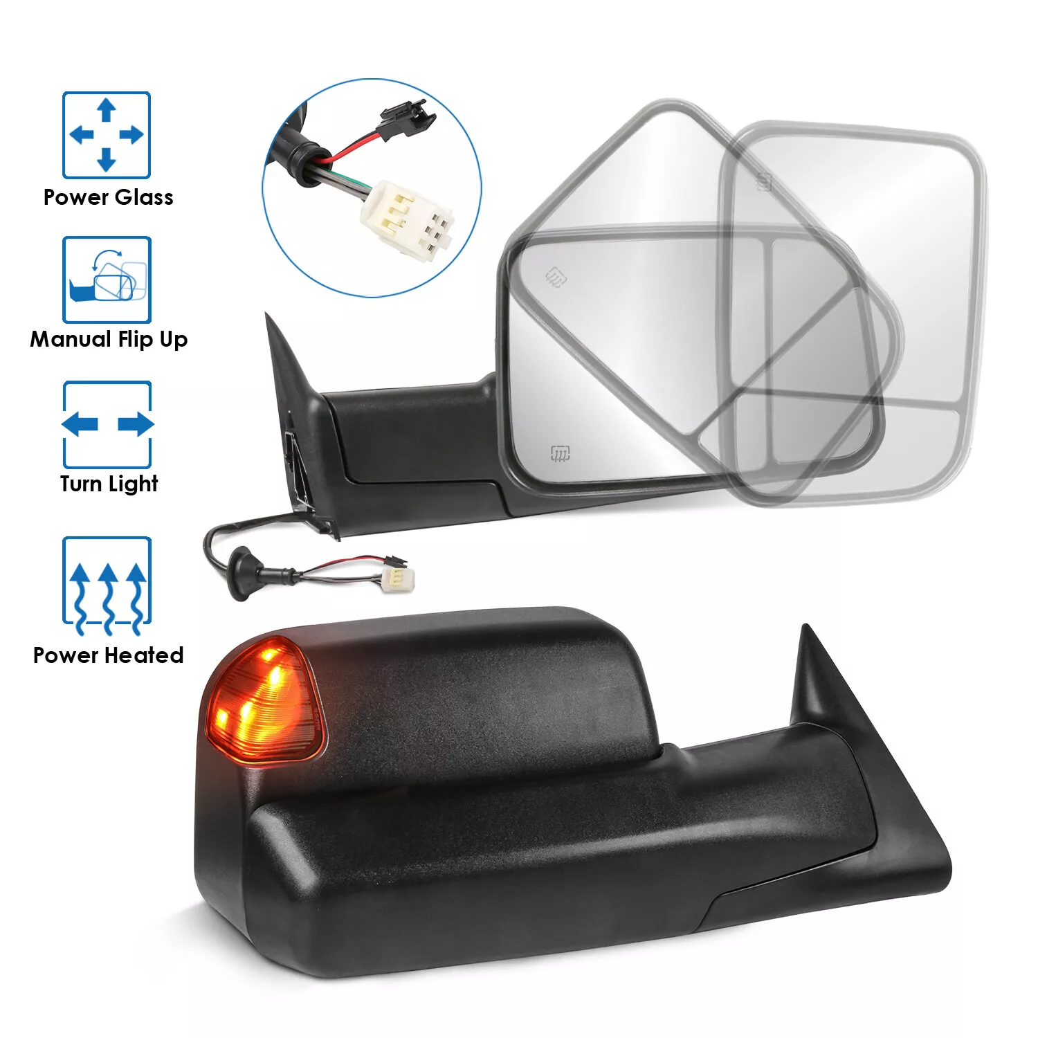 MOSTPLUS Tow Mirrors Side View Power Heated w/ Led Signal Lights for 1998-2002 Dodge Ram