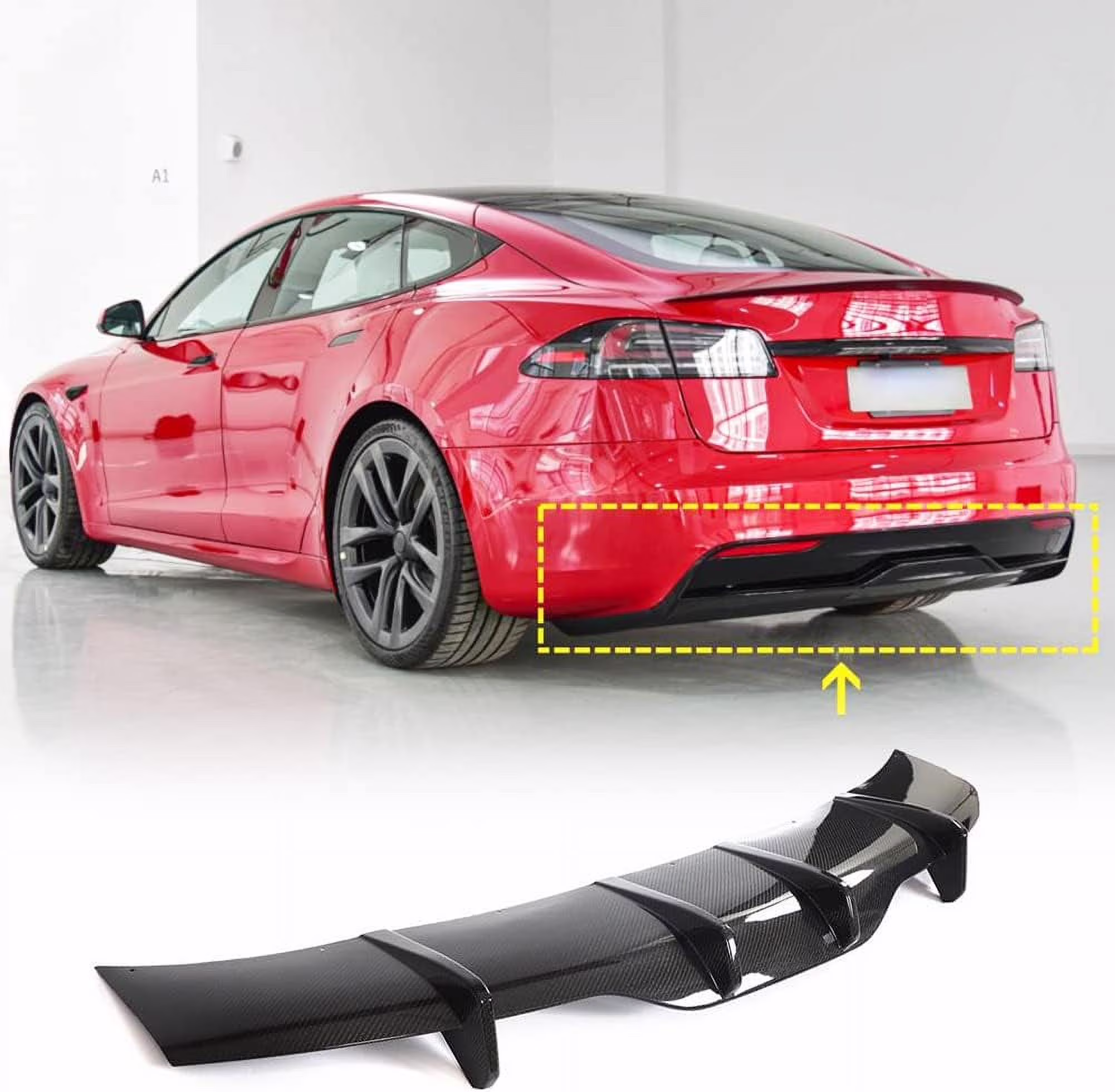 Model S Carbon Fiber Rear Diffuser fits for Tesla Model S Sedan 4 Door 2021-2023 Rear Bumper Cover Lower Lip Spoiler Valance Protector