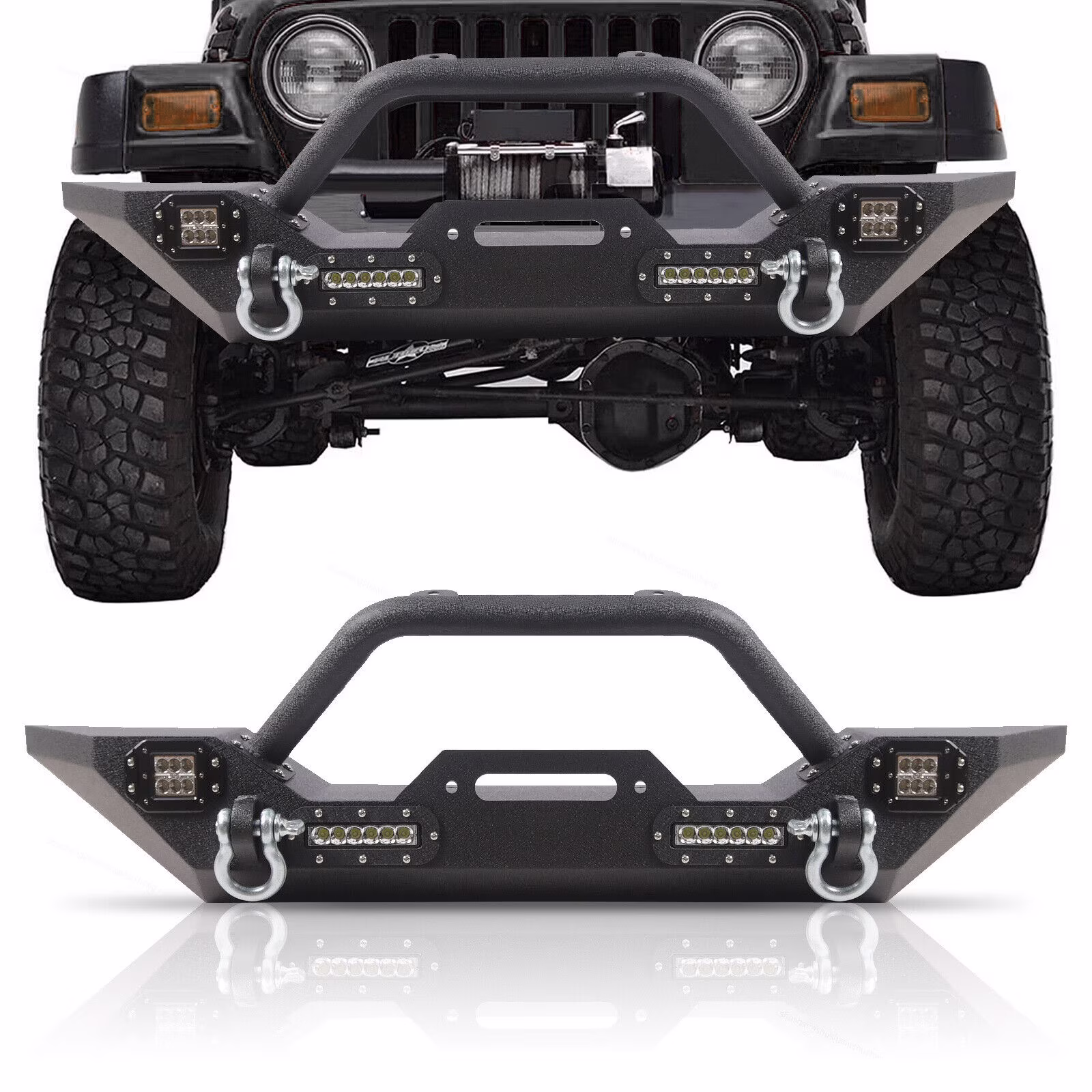 BoardRoad Front Bumper W/Led Lights Winch Plate D-Rings Fits 1987-06 Jeep Wrangler TJ YJ