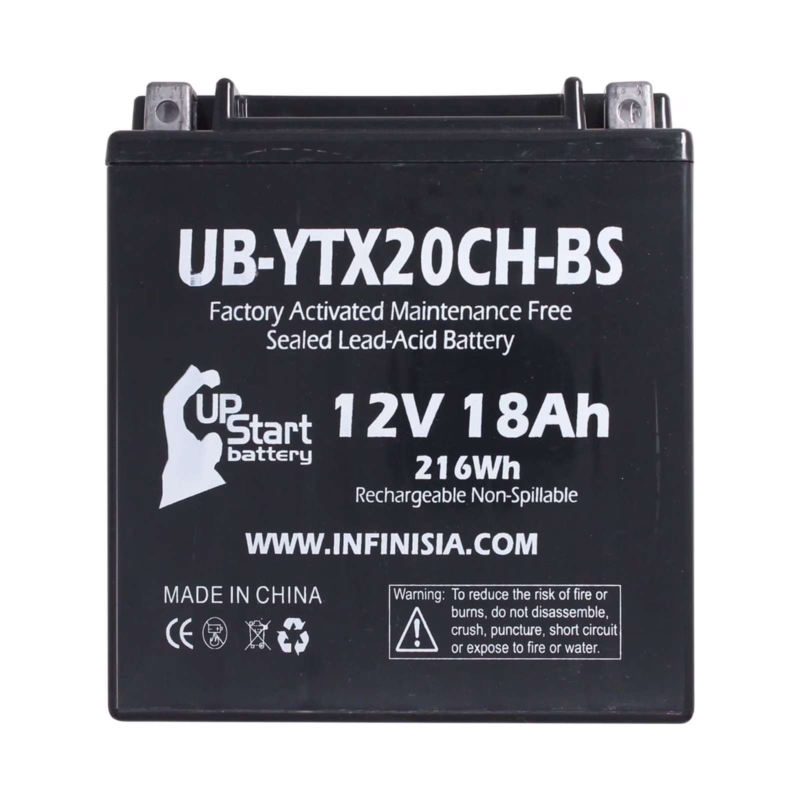 UB-YTX20CH-BS Battery Replacement for 2017 Suzuki LT-A500X King Quad 500 CC ATV - Factory Activated, Maintenance Free, Motorcycle Battery - 12V 18AH, UpStart Battery Brand