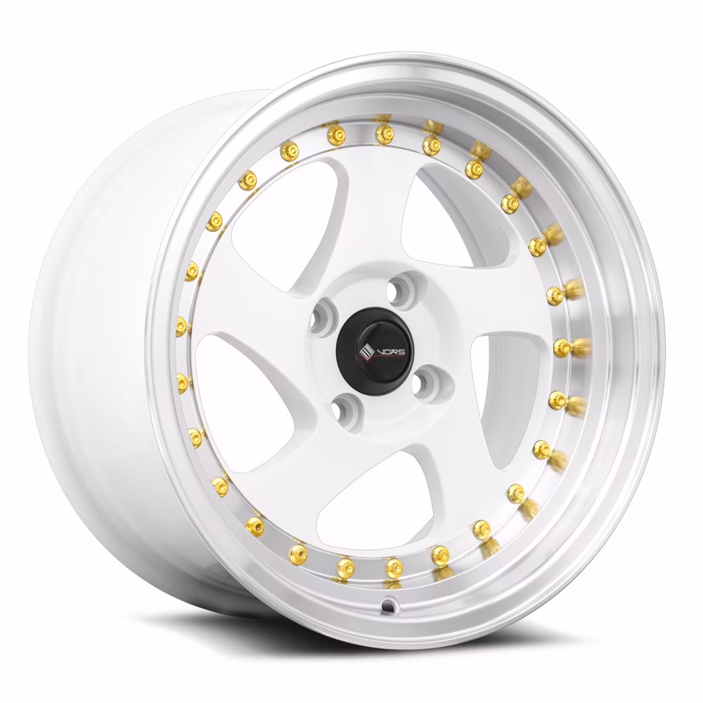 Vors VR2 15x8 4X100 20 73.1 White Machine Lip Gold Rivet