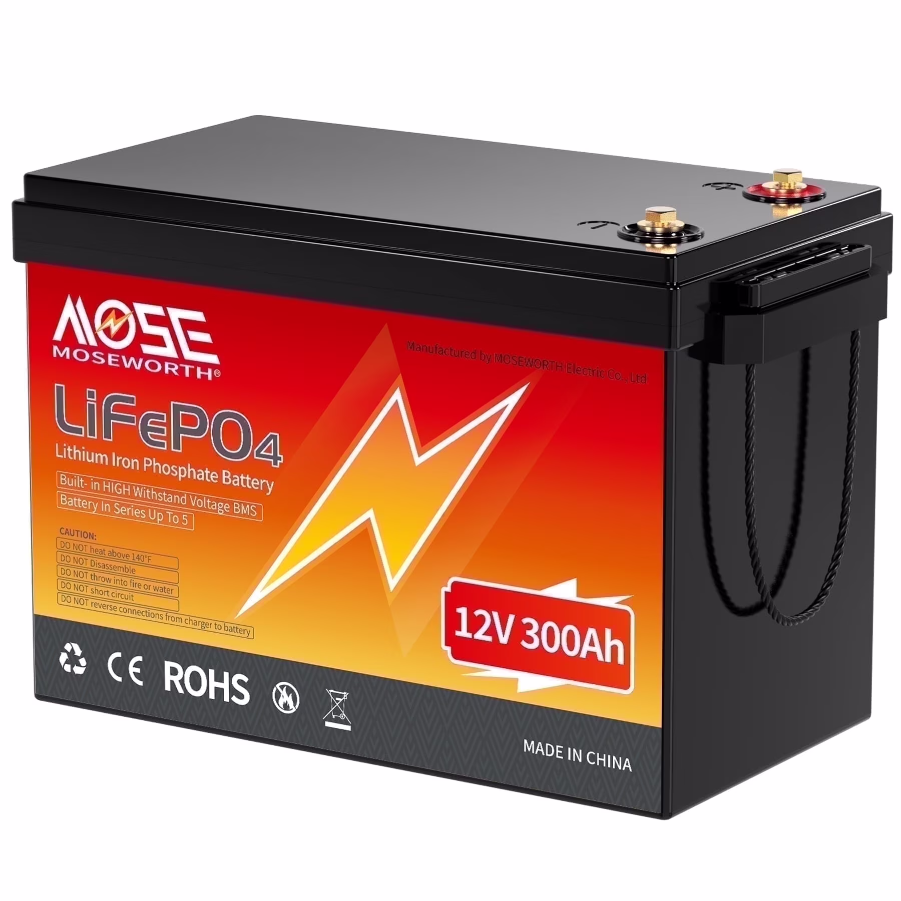 12V 300Ah LiFePO4 Lithium Battery,for RV,Solar,Golf Carts,Van,Marine,Camping,Trolling Motor,Motorhome,Built in 200A BMS,MOSEWORTH 15000+ Deep Cycles