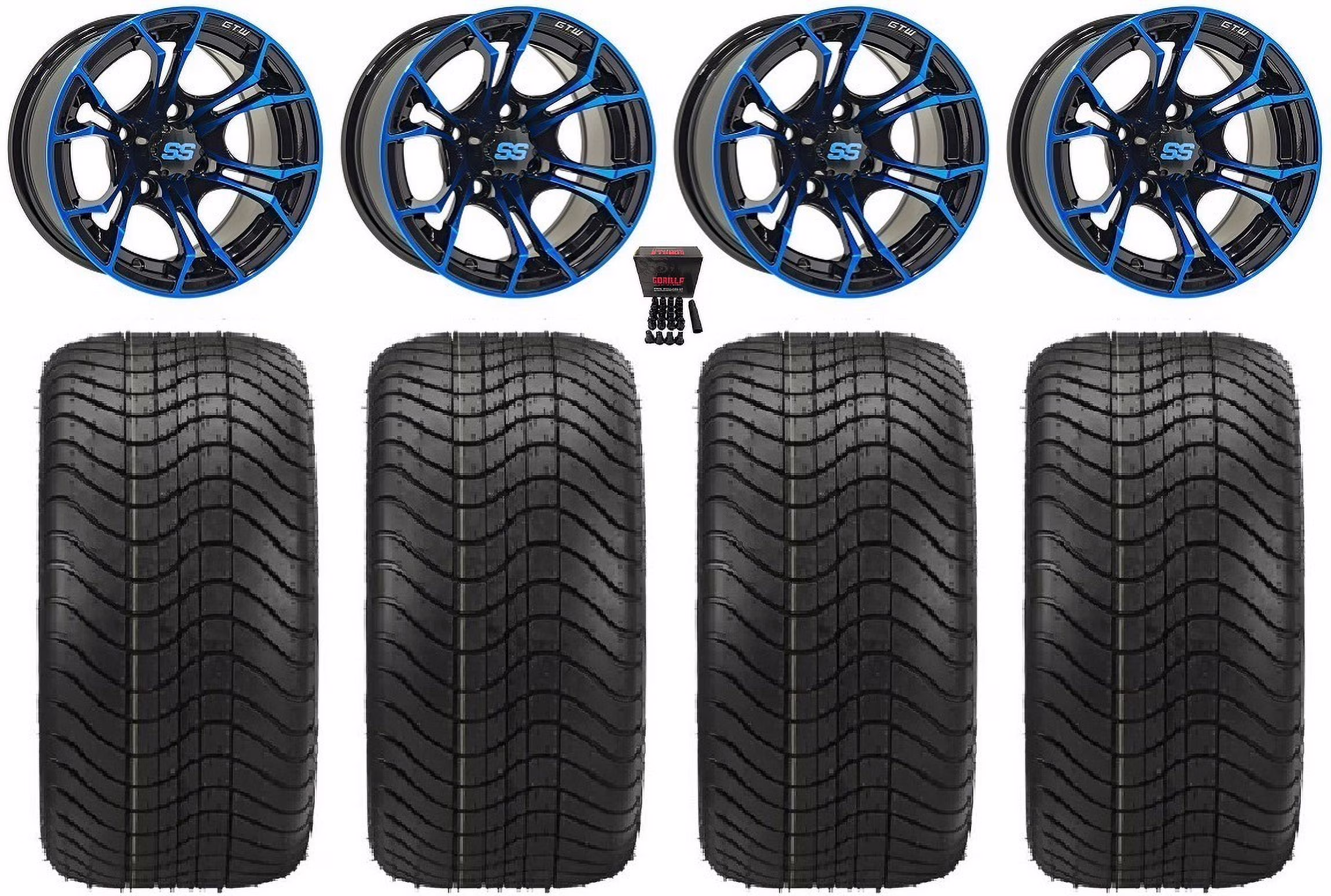 GTW Spyder 12" Golf Cart Wheels Blue Elite 215x40-12 Tires E-Z-GO & Club Car