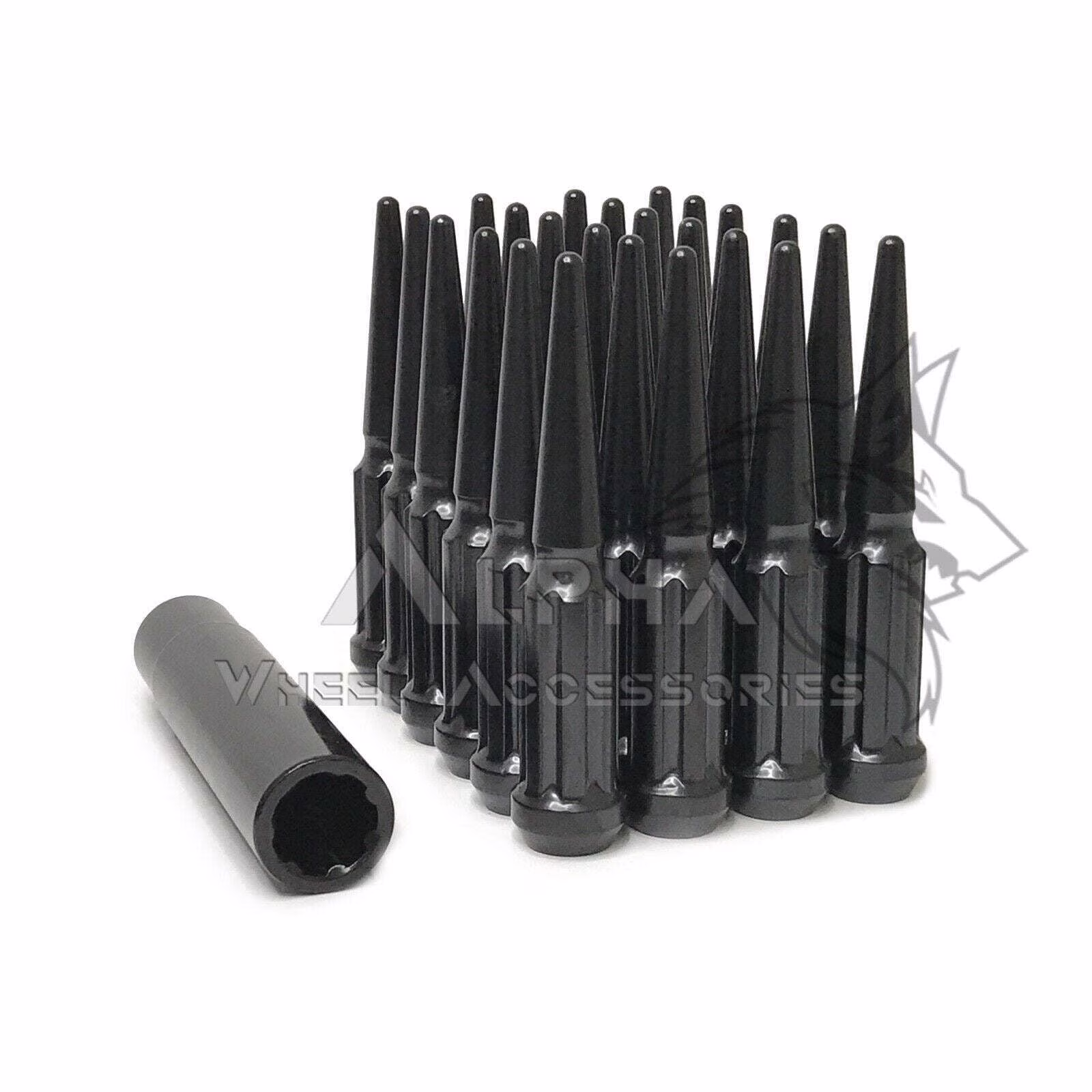 24 Black Spline Spiked Lug Nuts 14x1.5 For Ford F-150 Expedition Navigator + Key