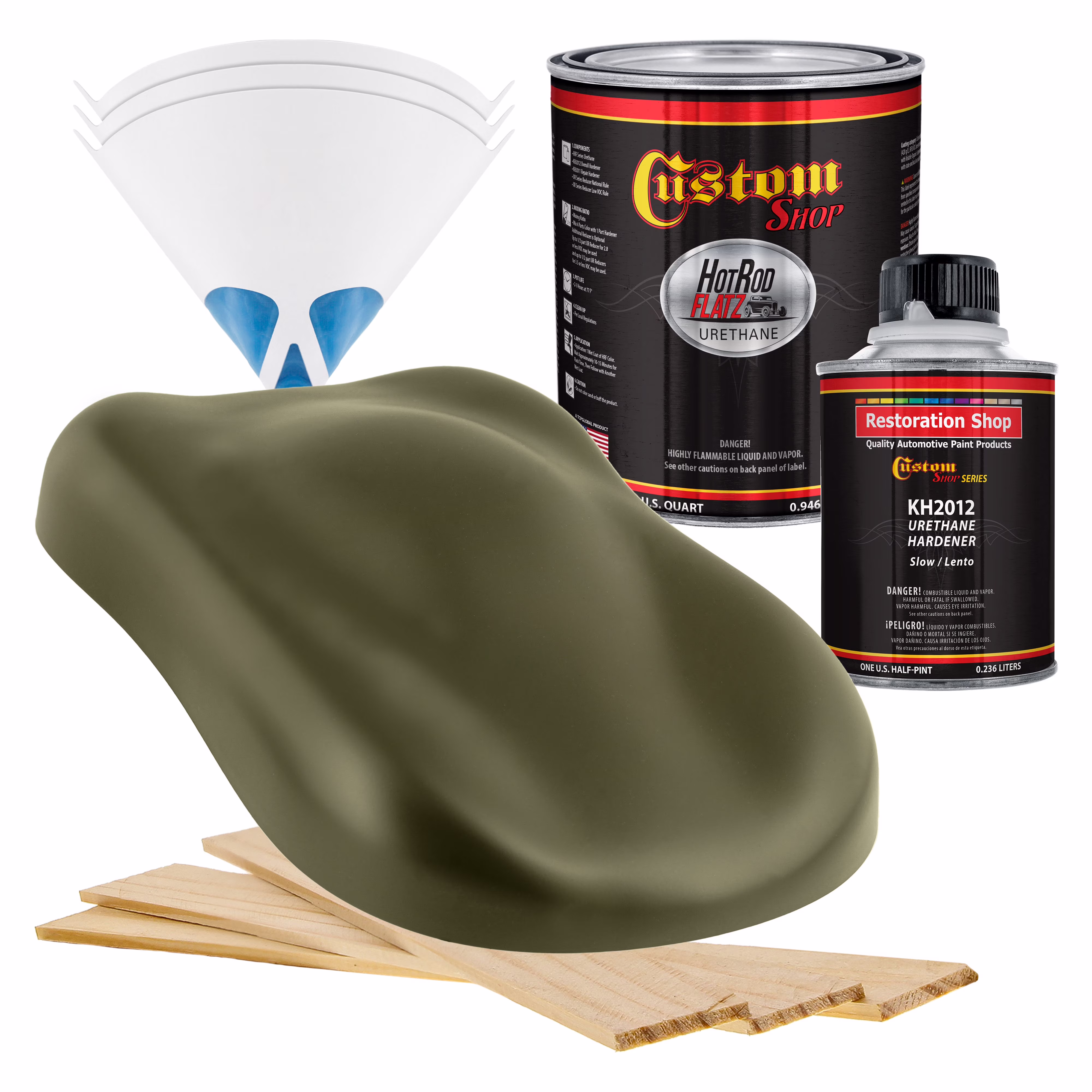 Custom Shop - Olive Drab Green - Hot Rod Flatz Flat Matte Satin Urethane Auto Paint - Complete Quart Paint Kit - Professional Low Sheen Automotive, Car Truck Coating, 4:1 Mix Ratio