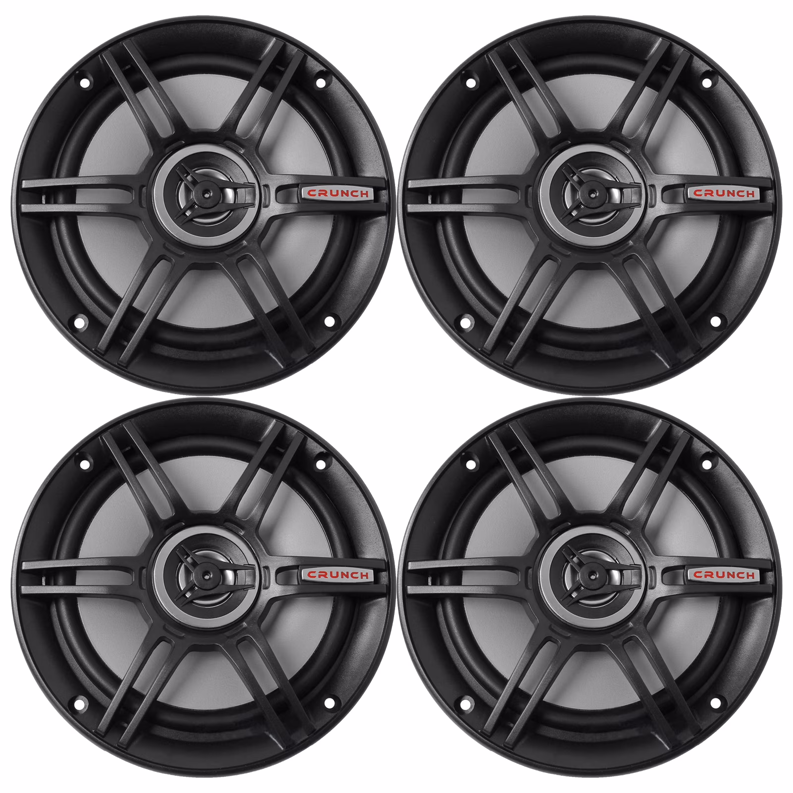 2 Pairs (QTY 4) of Crunch 6.5" Full Range 3-Way 300W Peak Power Shallow Mount Black Automotive Car Speakers
