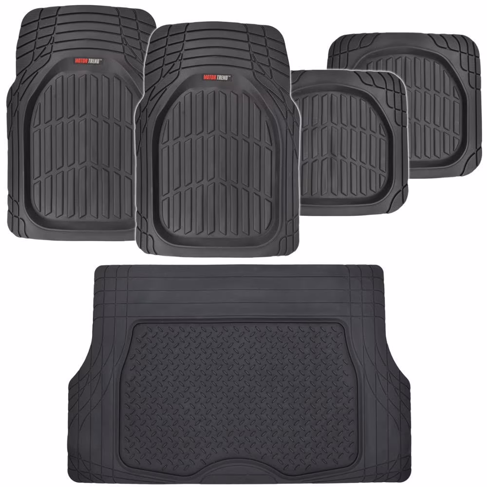 Motor Trend FlexTough Deep Dish Heavy Duty Rubber Floor Mats & Cargo Liner For Trunk All Weather (Black) - Complete Coverage Set