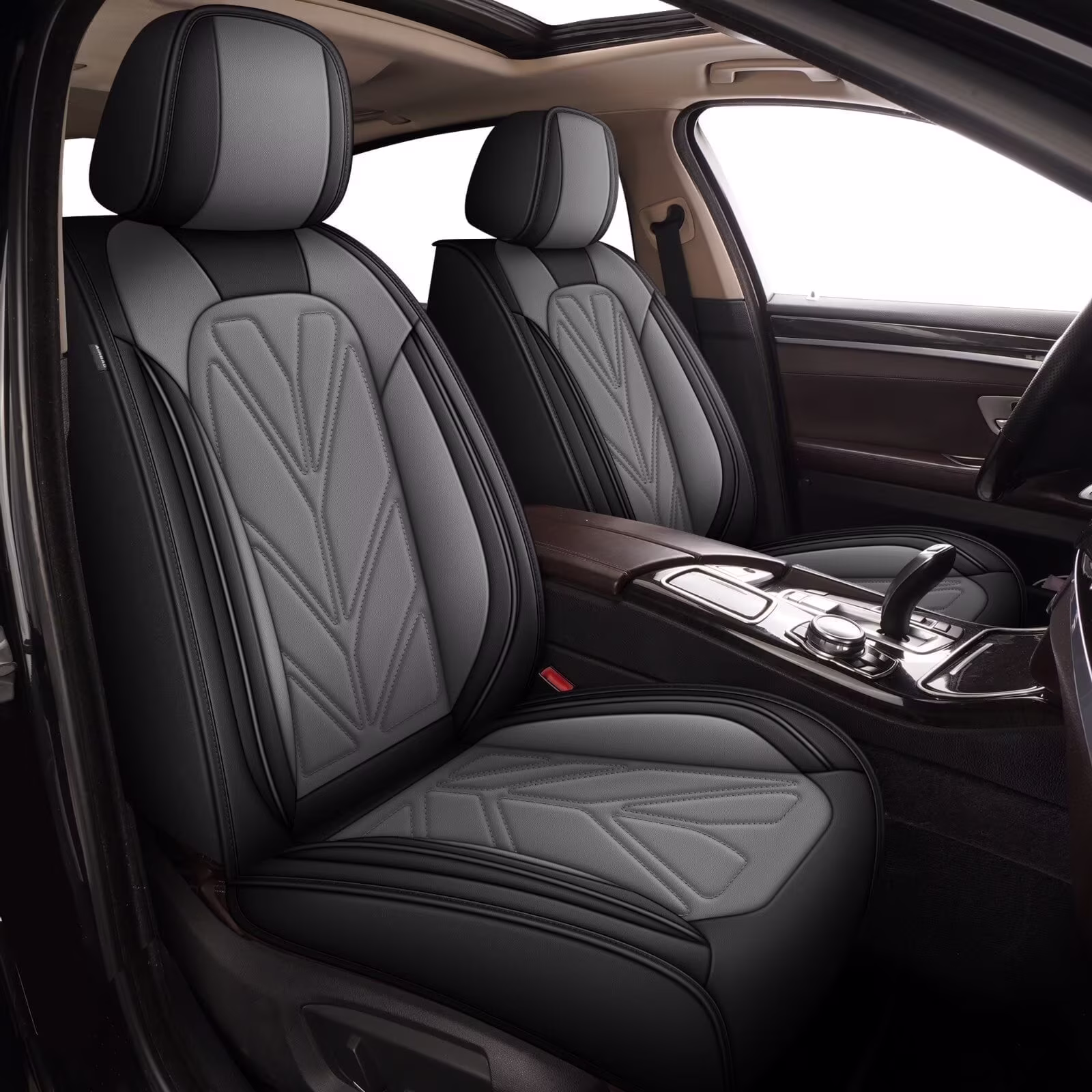 DIKSOAKR 2 Front Car Seat Covers for Volkswagen VW Taos 2022-2024 2025 Breathable Leather Seat Covers Waterproof Automotive Seat Cushion Protectors (2 Seat, Black&Grey)
