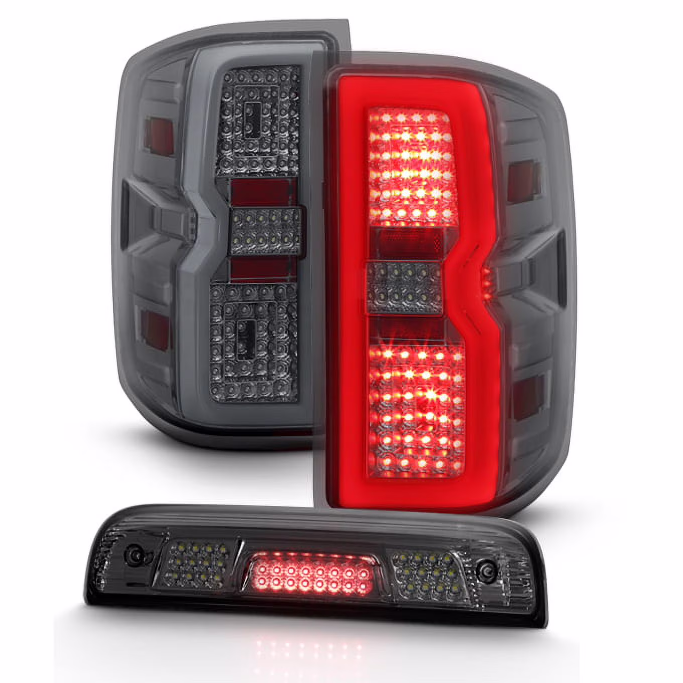 AKKON - For 2014-2019 Chevy Silverado | GMC Sierra LED Tube Tail Lights + 3rd Brake Light Set - Smoke Pair