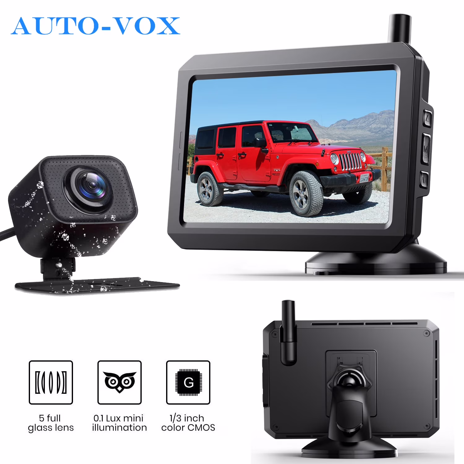 Auto-Vox Backup Camera Wireless 5'' Monitor Kit, Waterproof Rear View Camera Reversing Parking System for Trucks, SUV, and Universal Cars