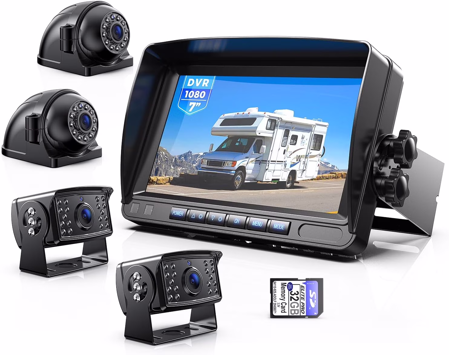 ZEROXCLUB Wired 7" Rv Back Up Camera Kit 1080P HD Night Vision Waterproof Backup Camera Monitor for Bus RV Semi Box Truck Trailer BY704