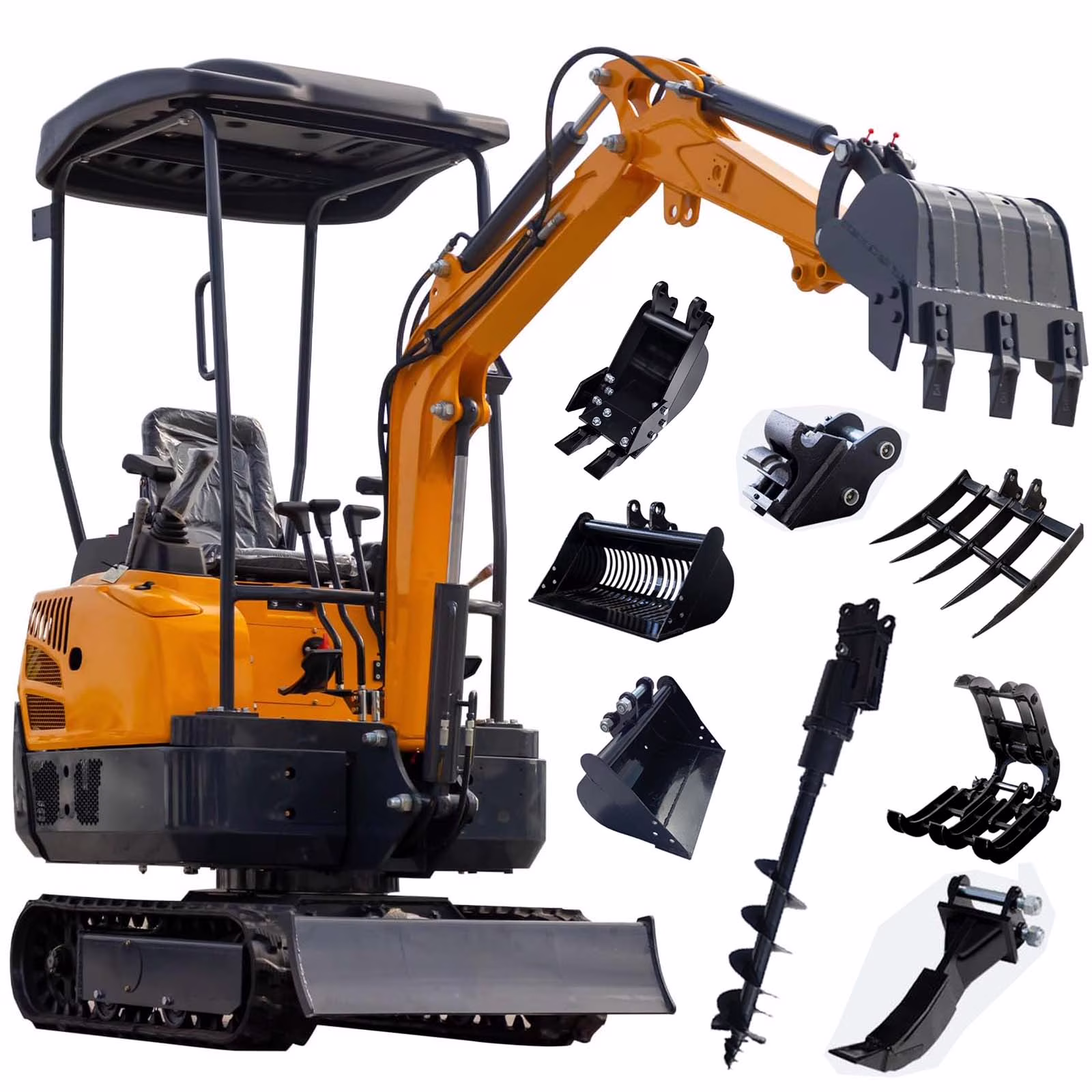 MS15PRO 1.5 Tons Crawler Small Digger Hydraulic Excavator with Bucket Hydraulic Thumb Clip, Bilateral Hydraulic Pilot, 13.5 HP EPA Gasoline Engine Trencher Digger Machine for Factory, Garden, Farms,