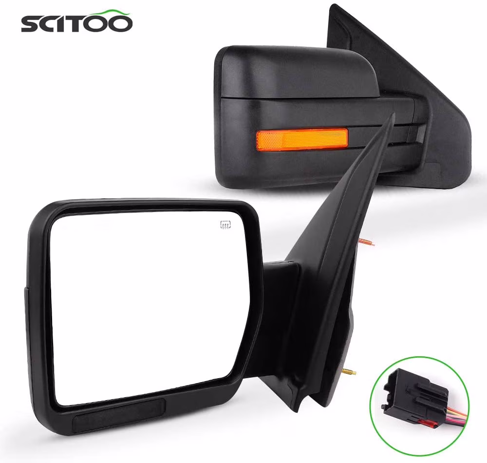 SCITOO Towing Mirrors Tow Mirrors Black Truck Mirrors fit for 2004-2014 for Ford F-150 Series Truck Pickup with Pair LH RH Power Adjusted Heated No Turn Signal Light