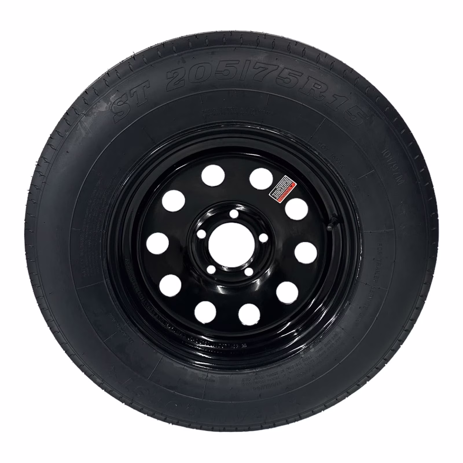 Trailer Tire on Rim ST205/75R15 TrailQuest LRC Radial 6 Ply 5 Lug Black Modular Wheel 5X5" Bolt Pattern
