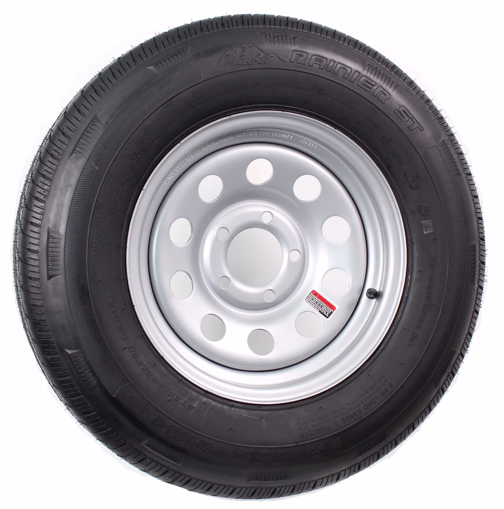 eCustomrim Radial Trailer Tire Rim ST205/75R14 205/75-14 Load C 5 Lug Wheel Silver Modular