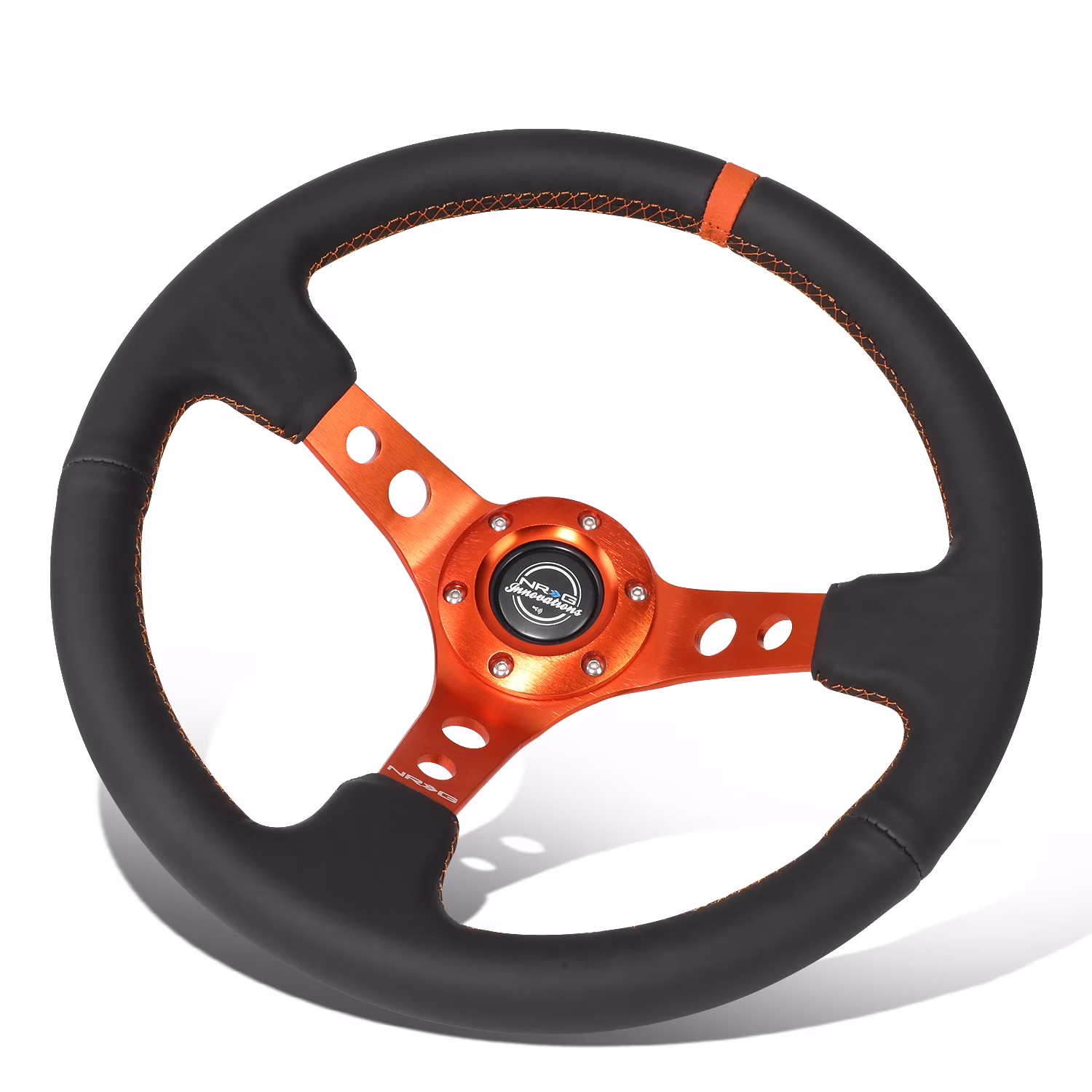 NRG Reinforce Steering Wheel (350mm / 3in. Deep) Blk Leather, Orange Center Mark w/ Orange Stitching