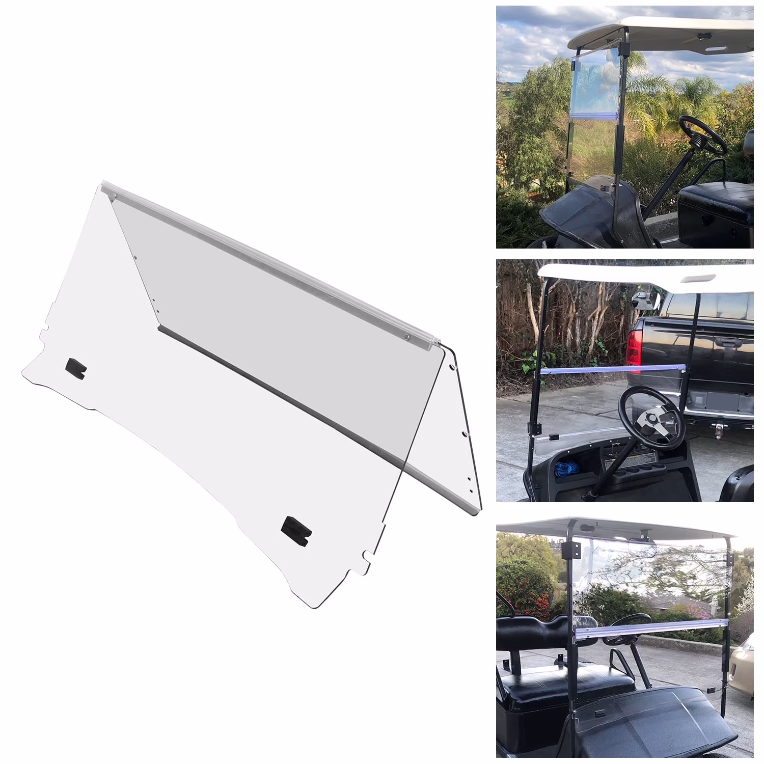 Kojem Clear Windshield for 1994-2014 EZGO TXT �� Medalist Folding Golf Cart Clear Fold Down Windscreen 1995-2013