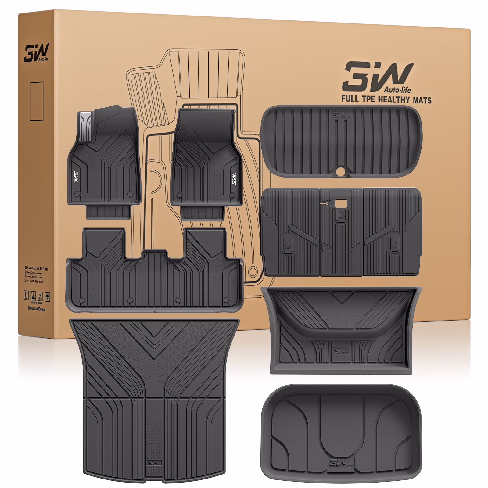 3W Tesla New Model Y Juniper Floor Mats and Cargo Liners, TPE Full Set Floor Liner for New Model Y 2025 2026, Cargo Mats and Seat Back Cover Protector, Car Mats for Tesla Accseeories, Black