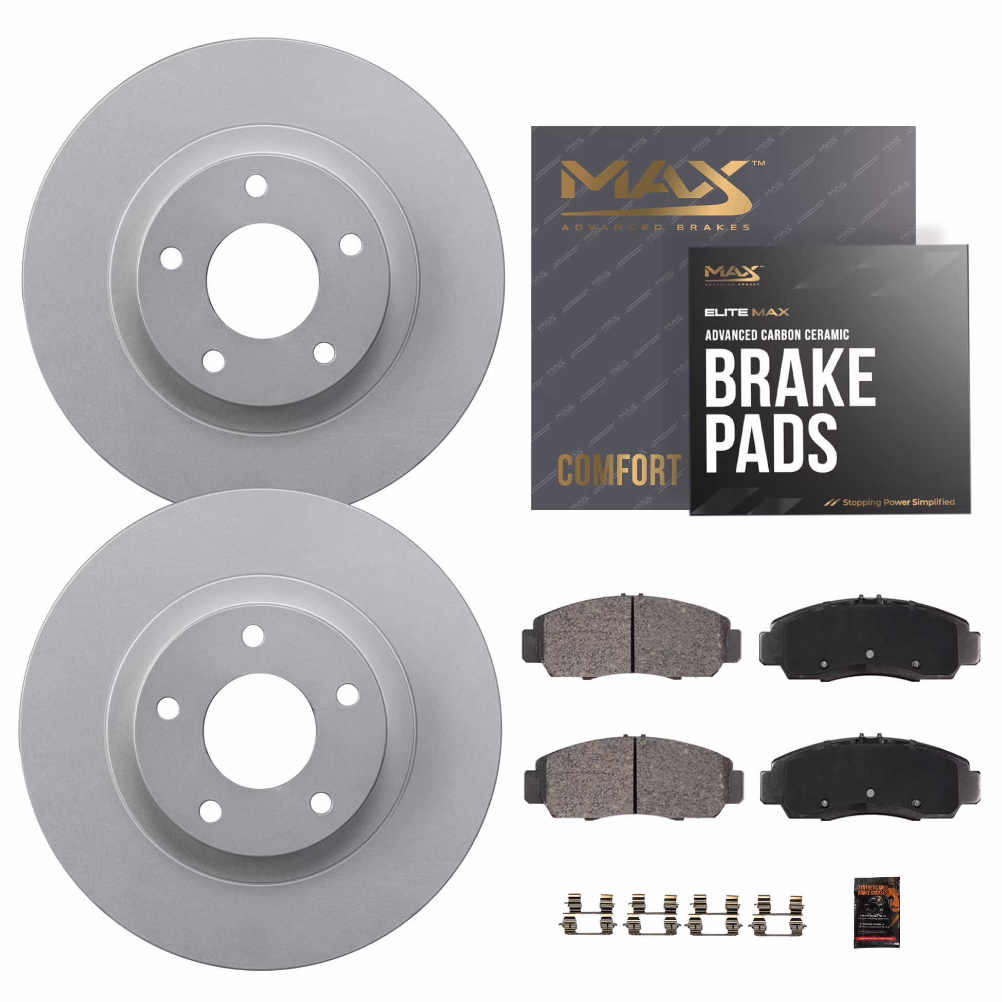 Max Advanced Brakes - Brake Kit for 2018 2019-2021 VW Atlas/Atlas Cross Sport Golf R Arteon Audi Q3 A3 Quattro Rear Replacement Geomet Coated Disc Brake Rotors and Ceramic Brake Pads