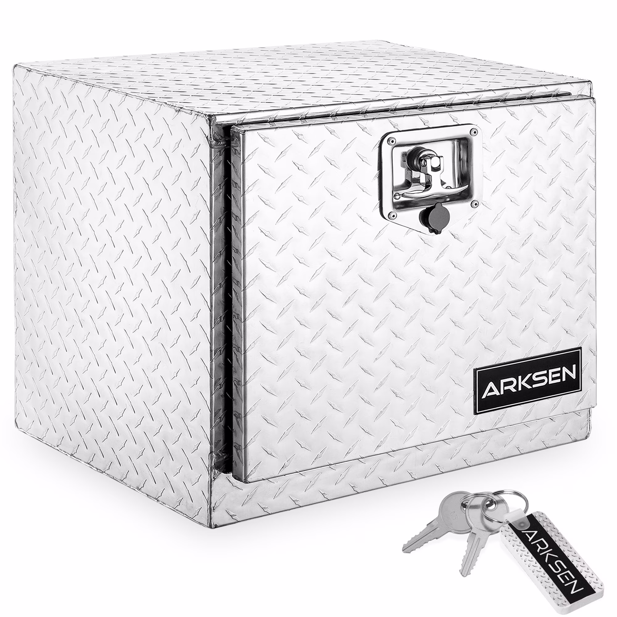 ARKSEN 18" Aluminum Truck Underbody Diamond Plate ToolBox w/ T-Handle Latch Durable Pickup Trailer Storage Organizer Tool Box Key Lock, Silver