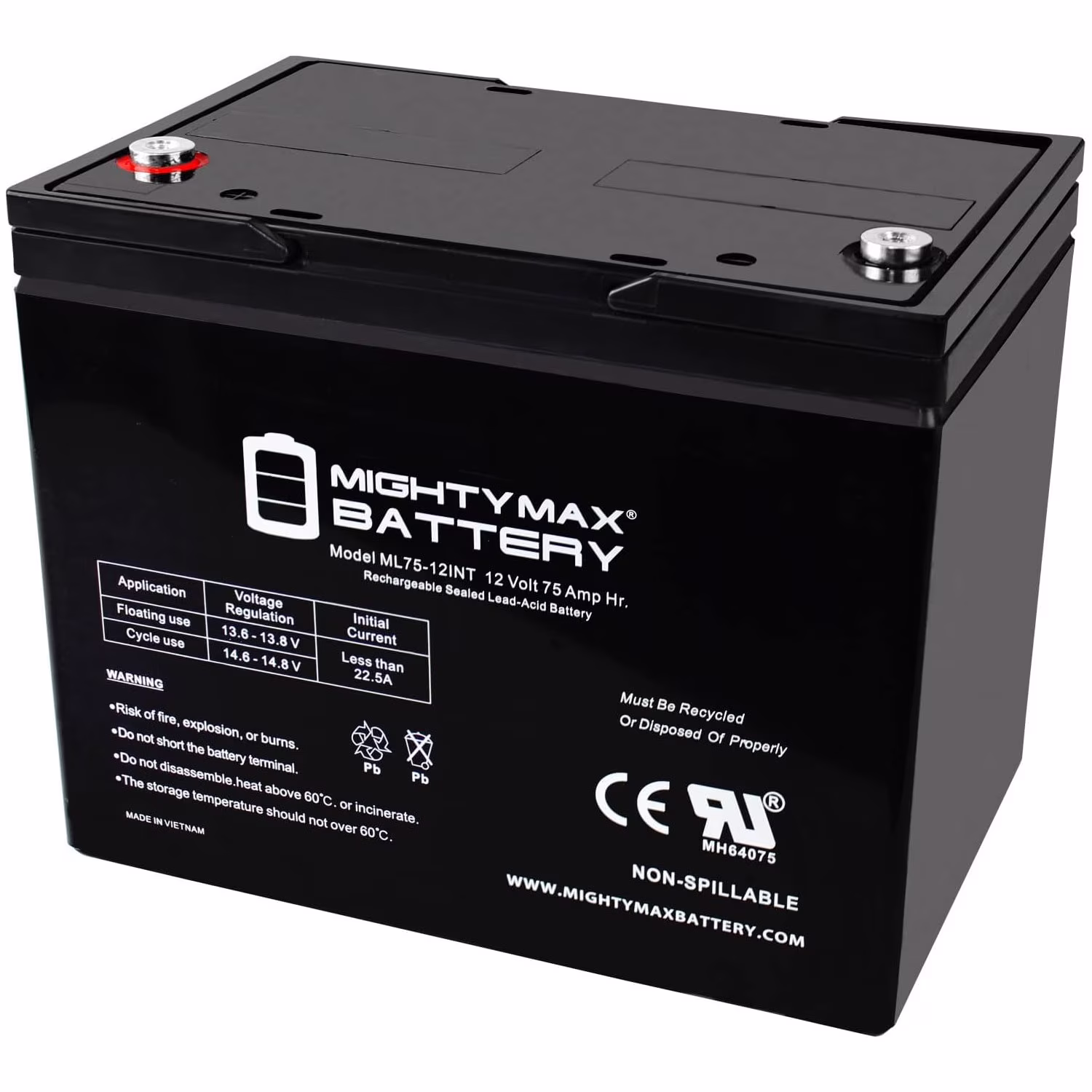 12V 75AH Internal Thread Battery for Scooter Wheelchair Mobility