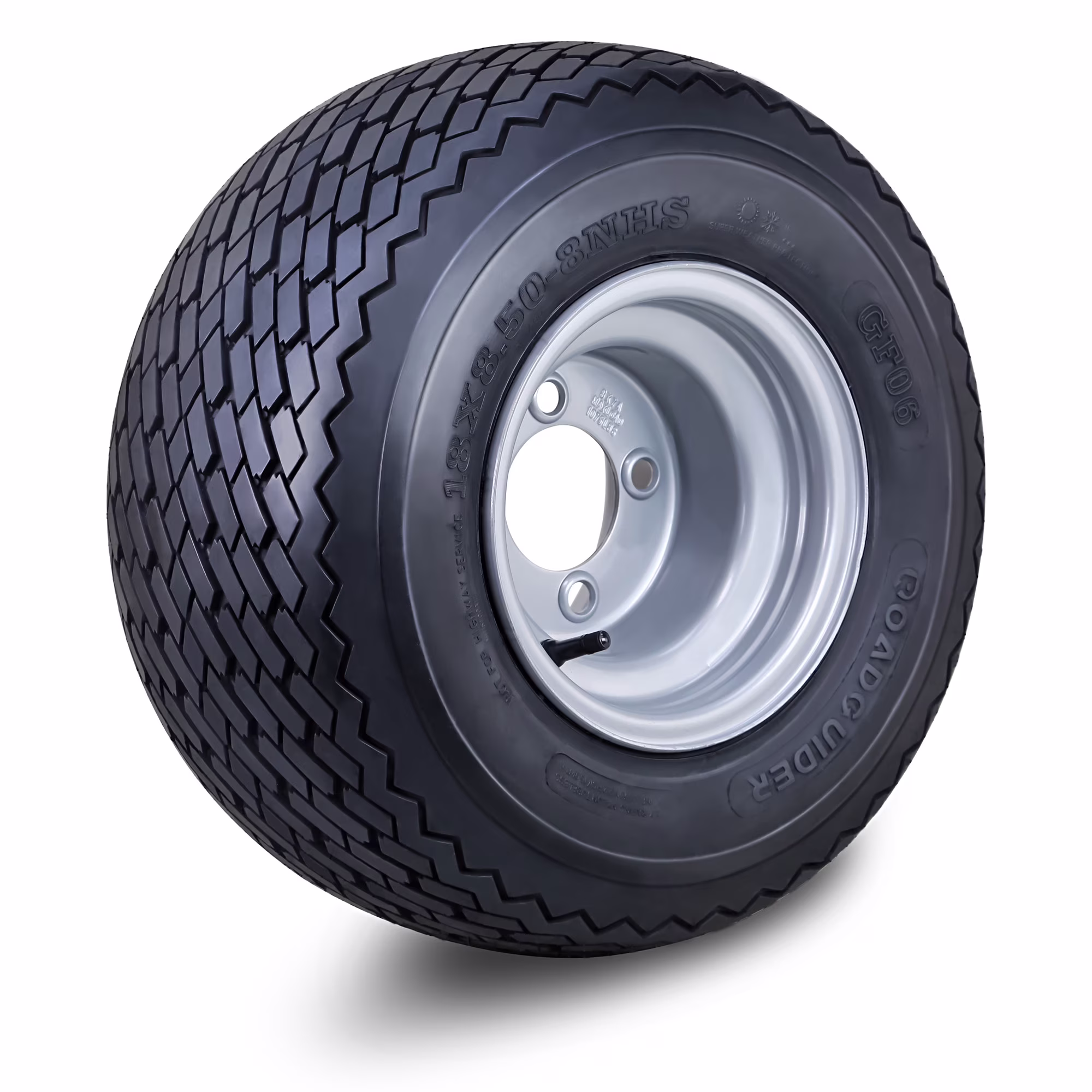 ROADGUIDER Golf Cart Tire Wheel Assembly 18X8.5-8 4-Ply /w 4 Lugs on 4" PCD Silver Rim Installed
